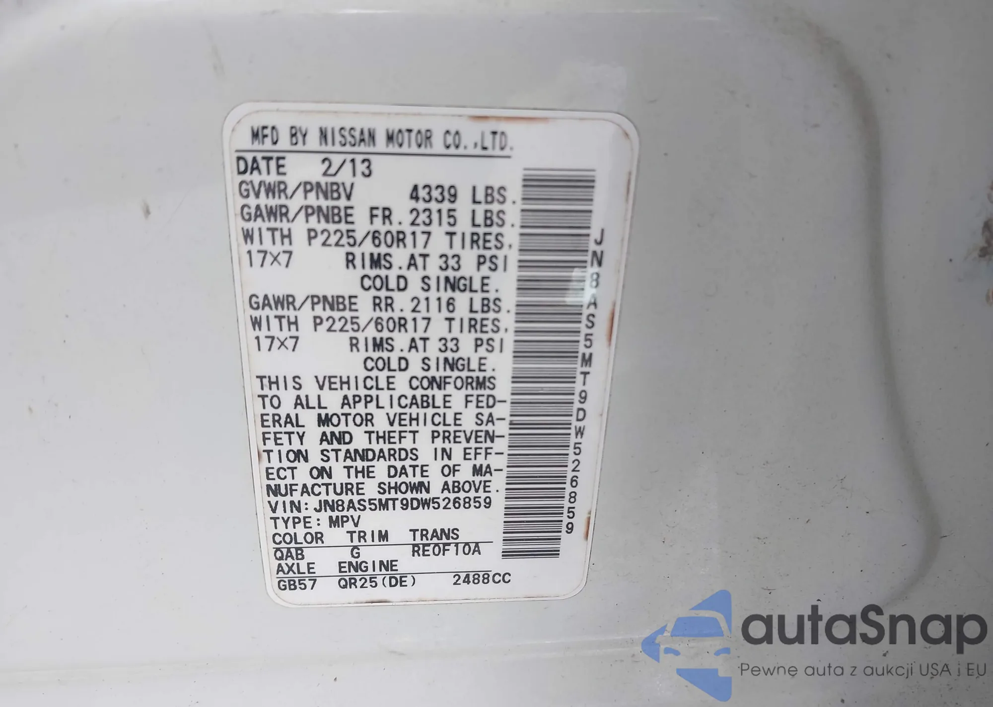 VIN: JN8AS5MT9DW526859