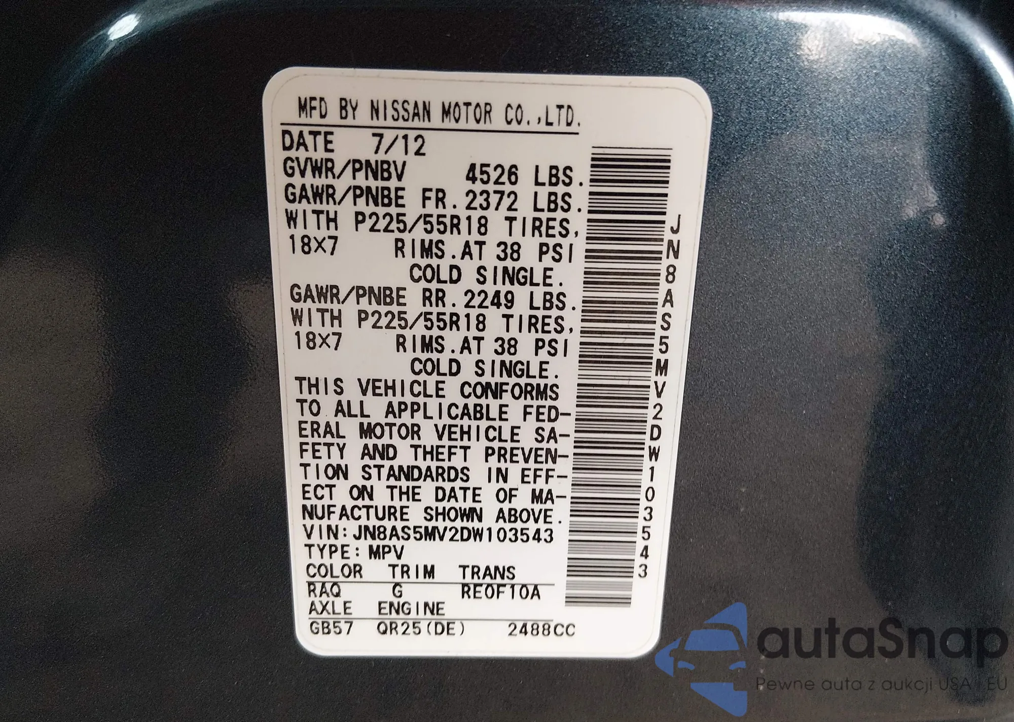 VIN: JN8AS5MV2DW103543