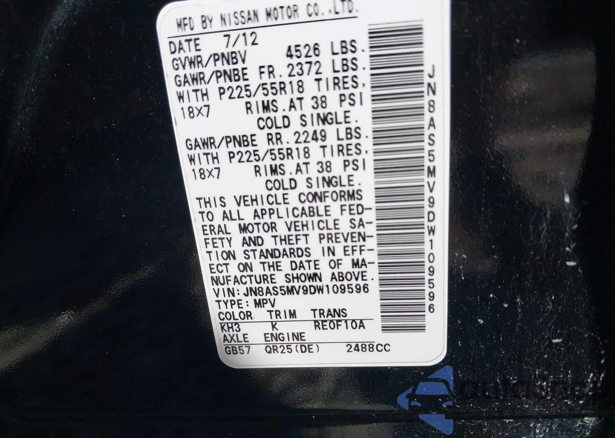 VIN: JN8AS5MV9DW109596