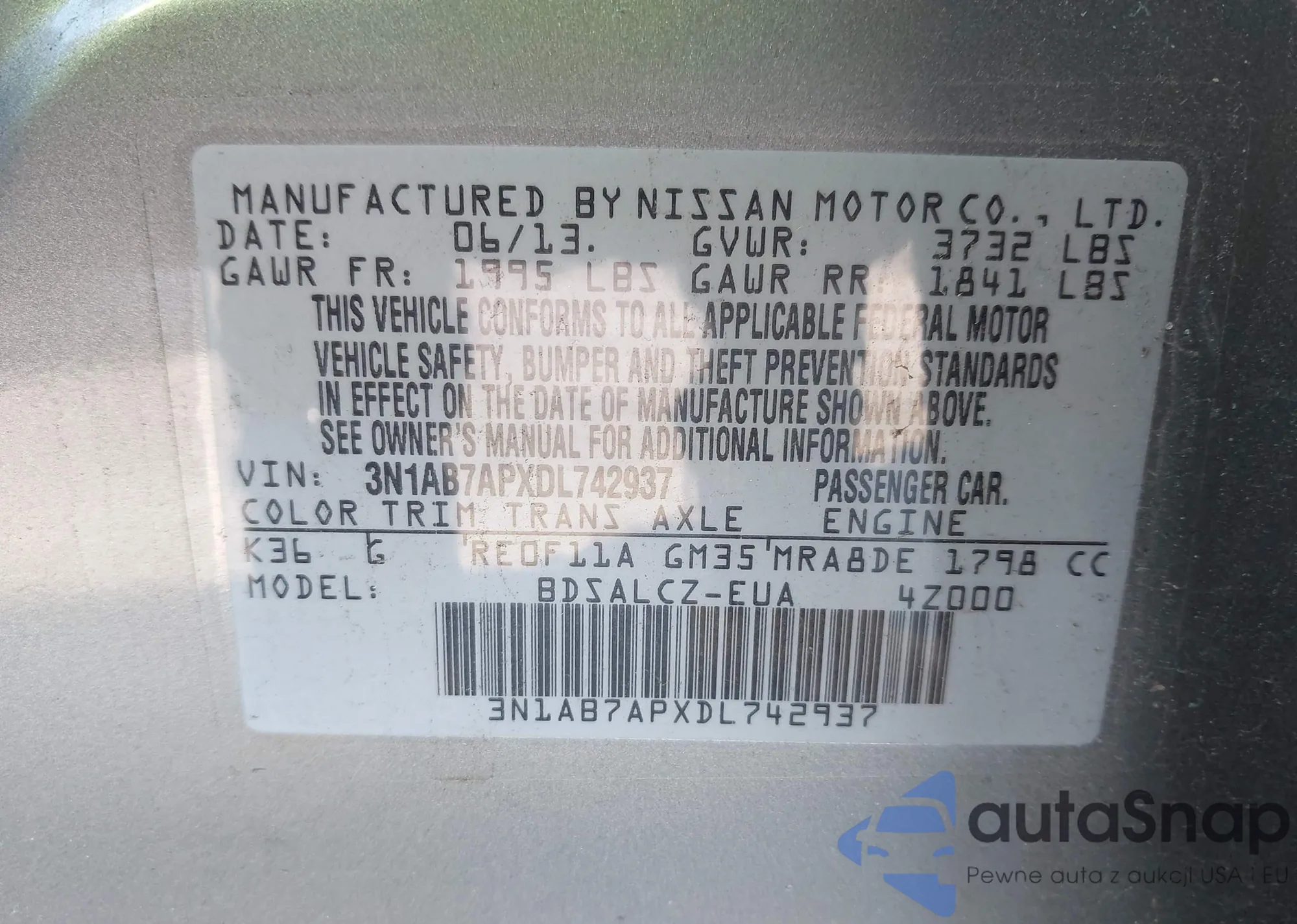 VIN: 3N1AB7APXDL742937