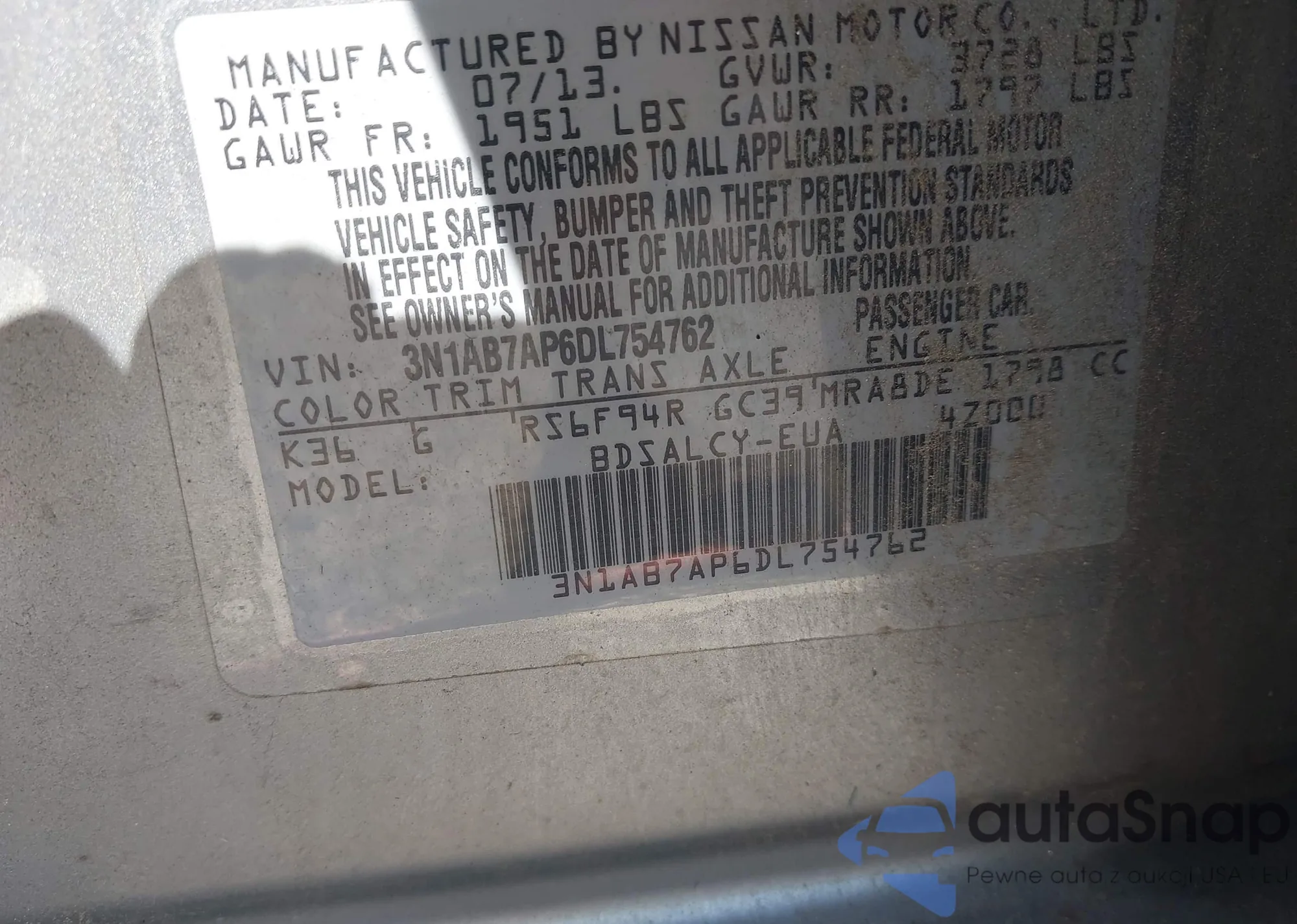 VIN: 3N1AB7AP6DL754762