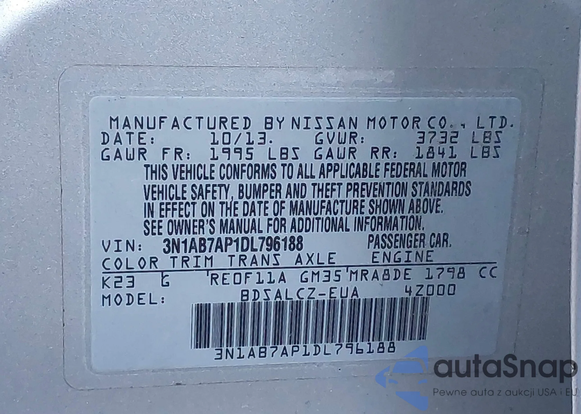 VIN: 3N1AB7AP1DL796188