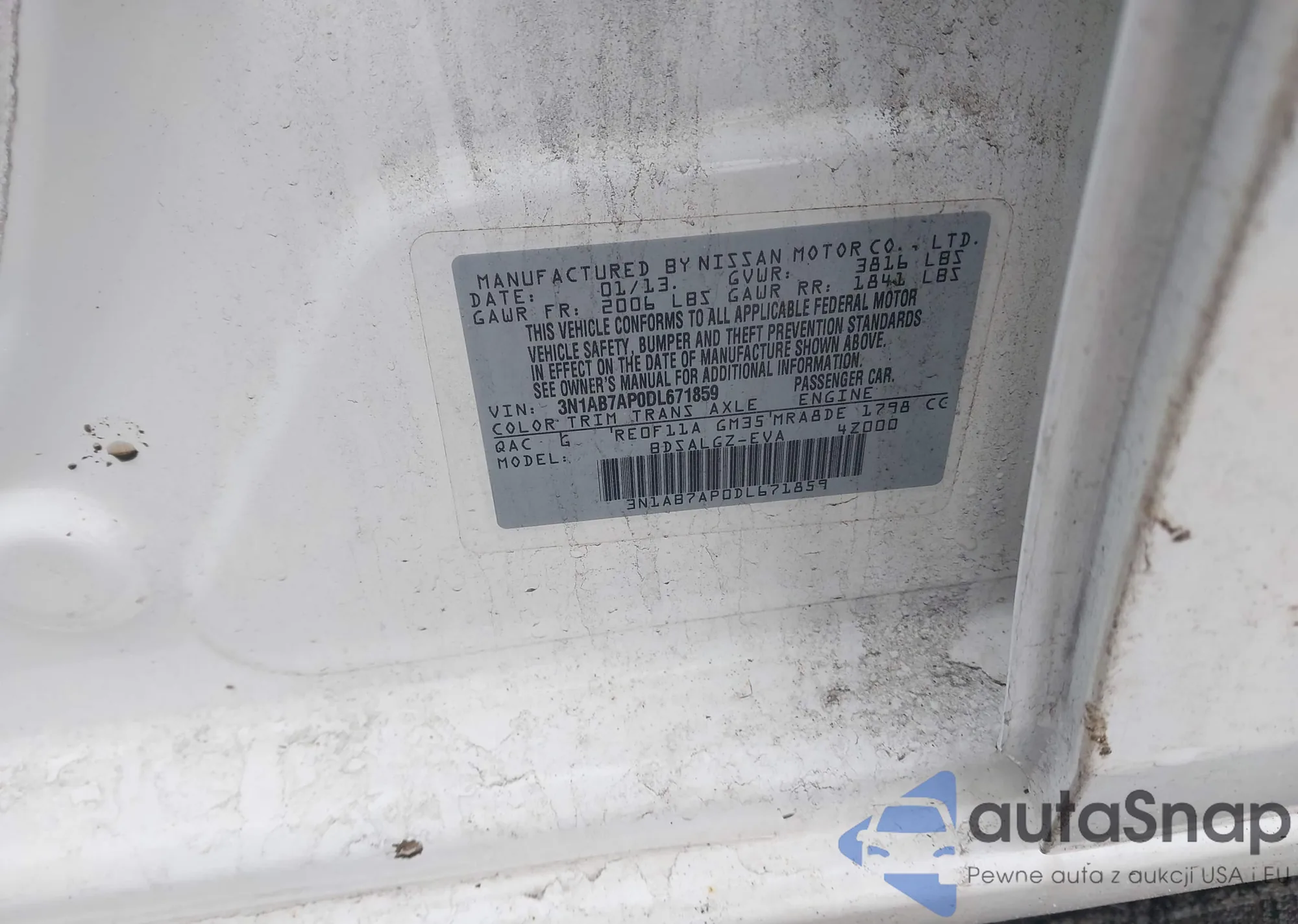 VIN: 3N1AB7AP0DL671859