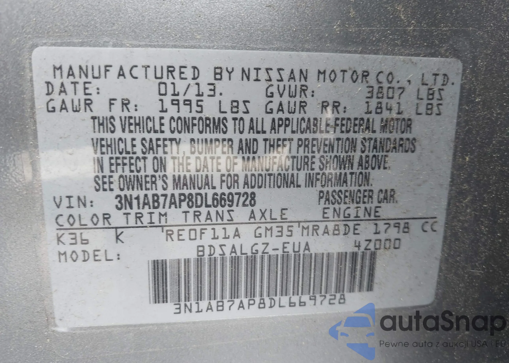 VIN: 3N1AB7AP8DL669728