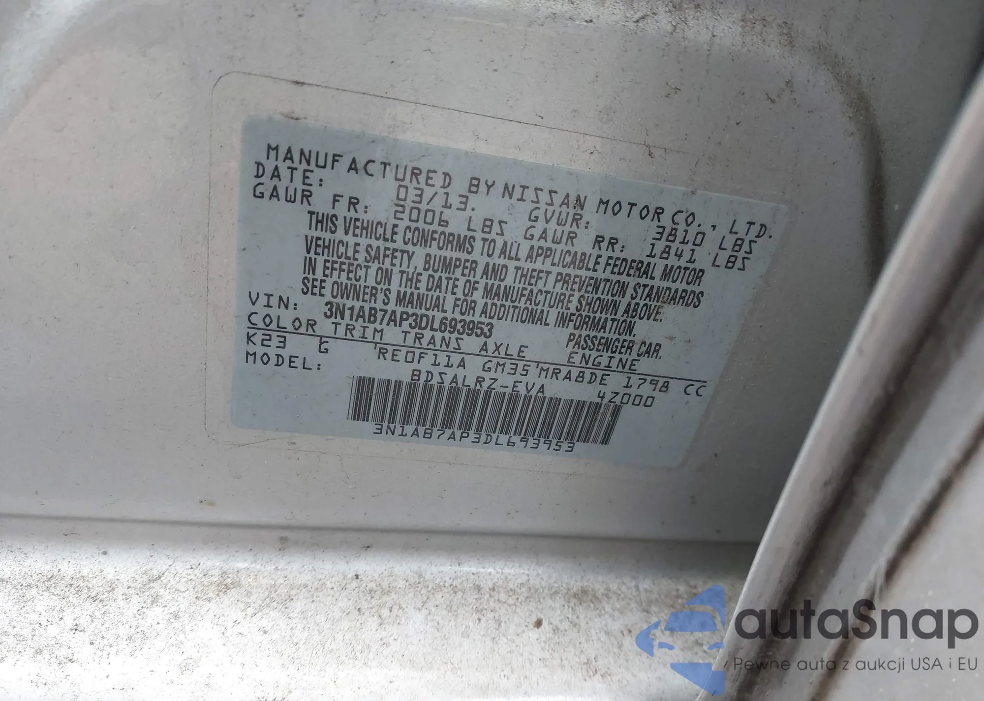VIN: 3N1AB7AP3DL693953