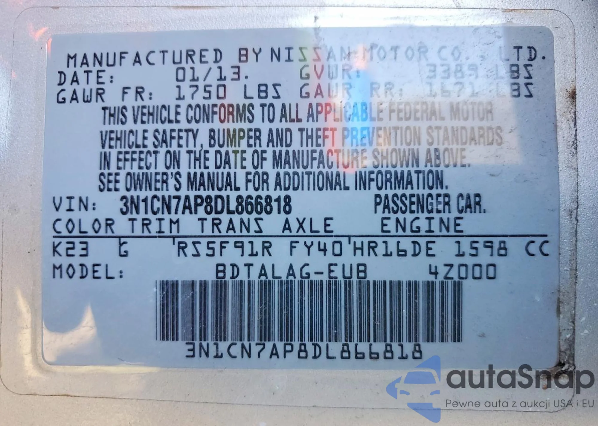 VIN: 3N1CN7AP8DL866818