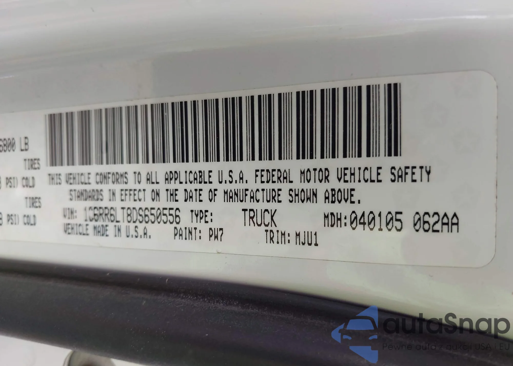 VIN: 1C6RR6LT8DS650556