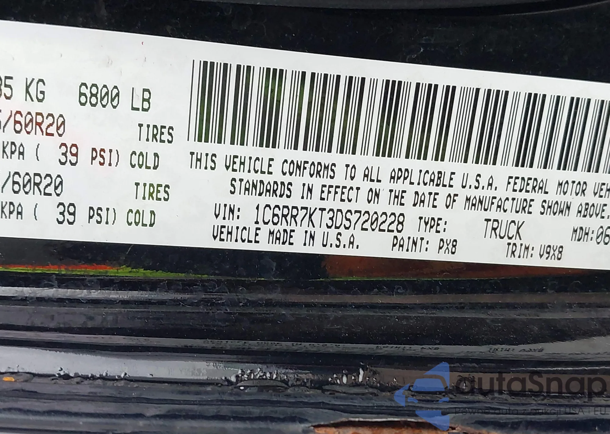 VIN: 1C6RR7KT3DS720228