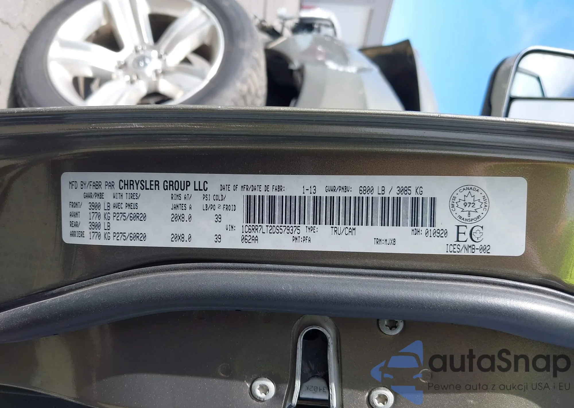 VIN: 1C6RR7LT2DS579375