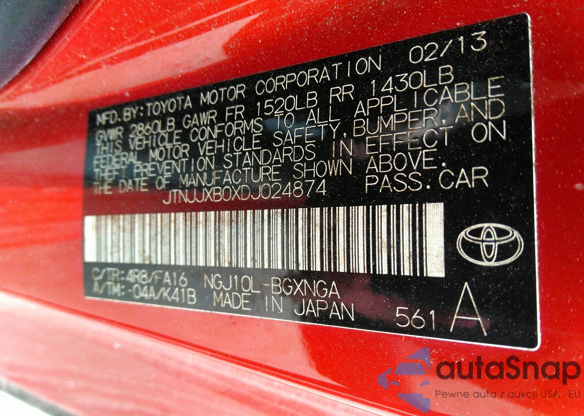 VIN: JTNJJXB0XDJ024874