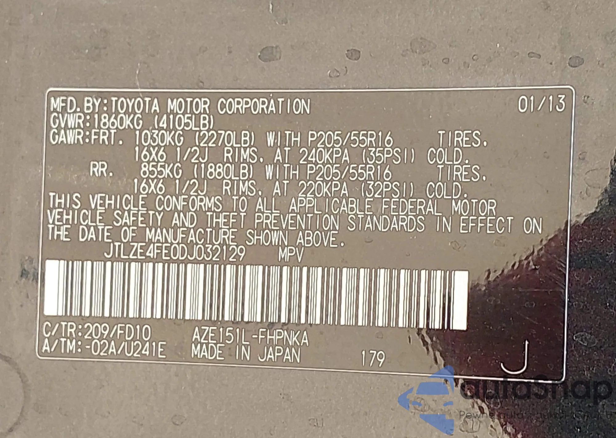 VIN: JTLZE4FE0DJ032129
