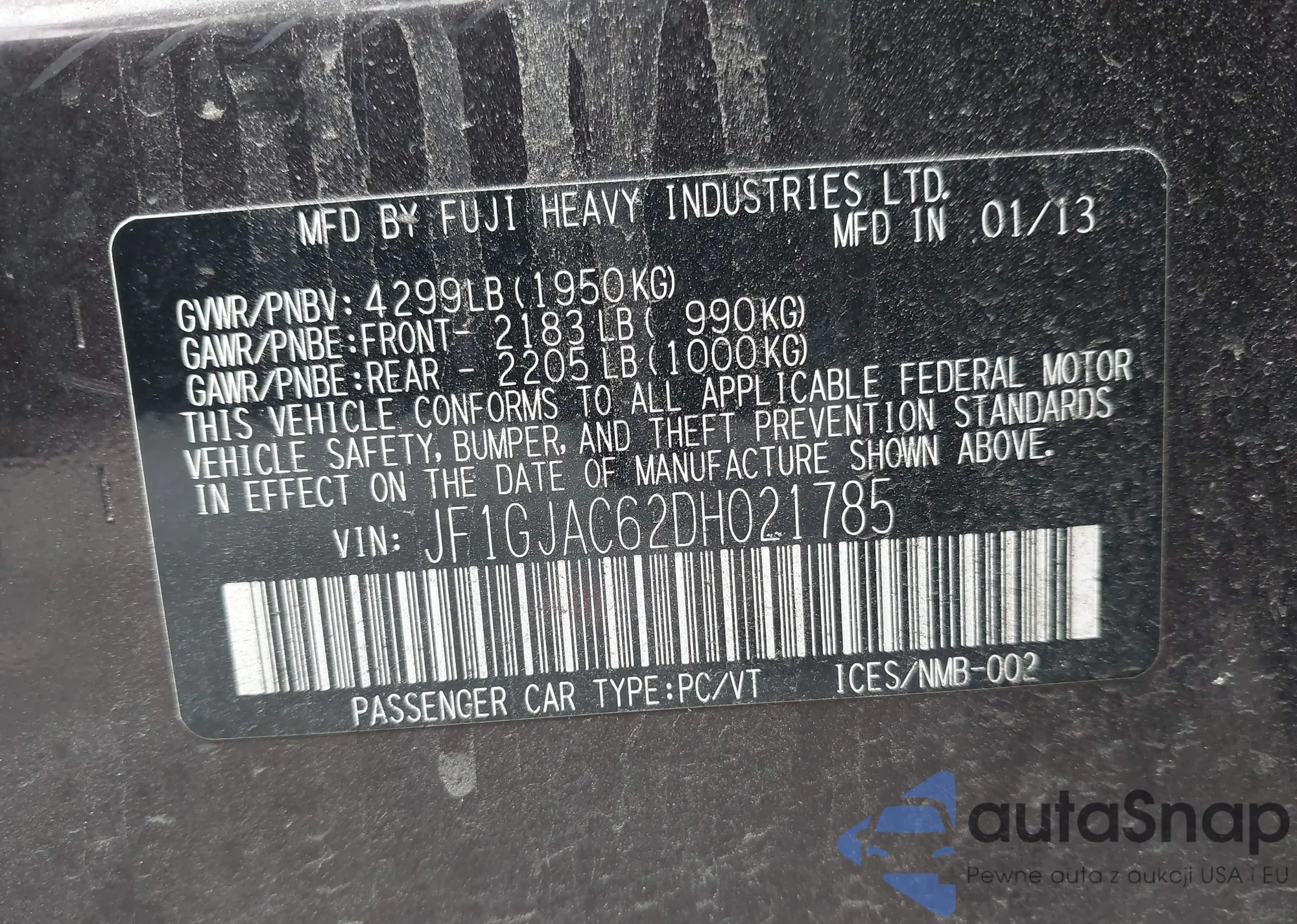 VIN: JF1GJAC62DH021785