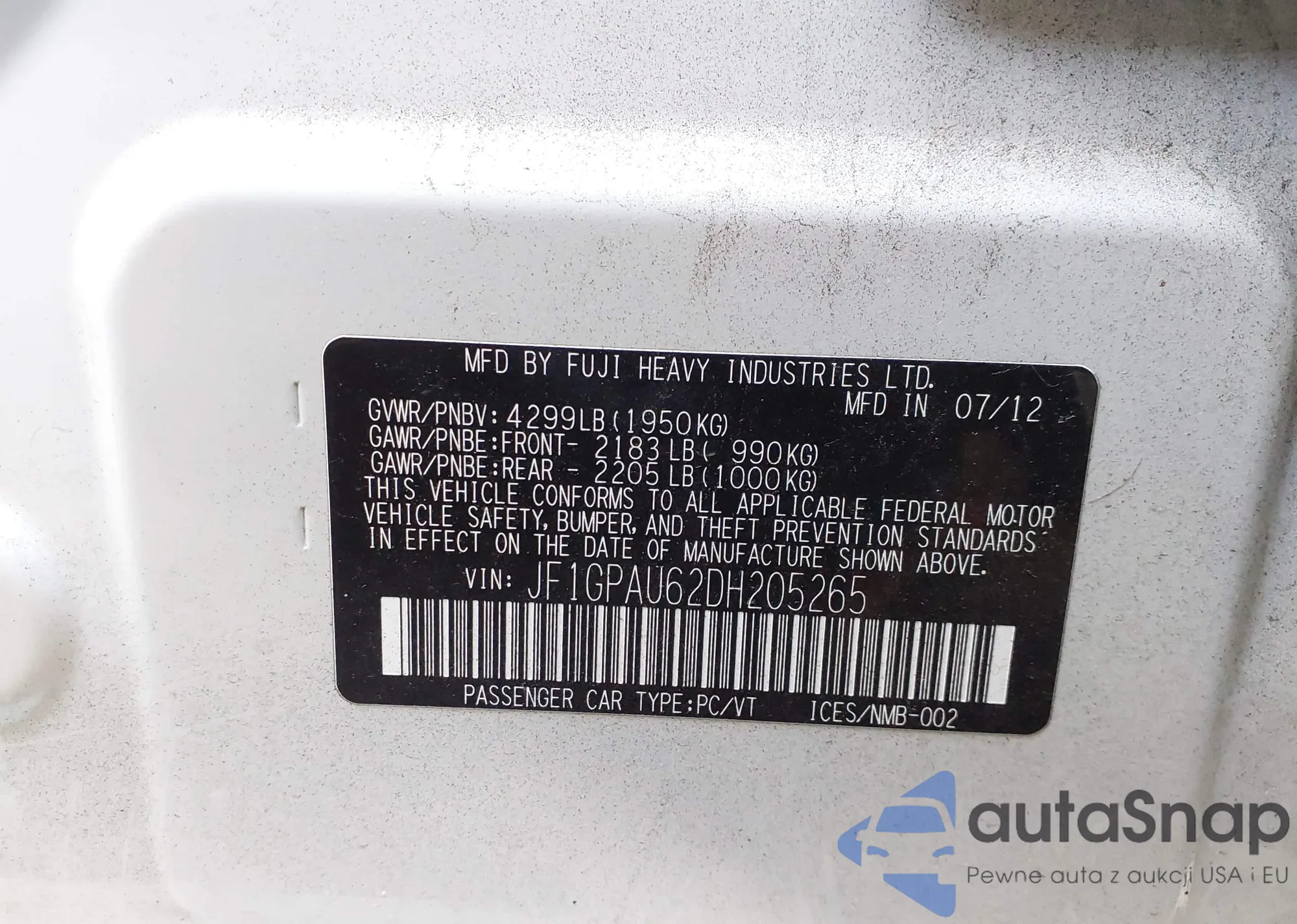 • VIN: JF1GPAU62DH205265