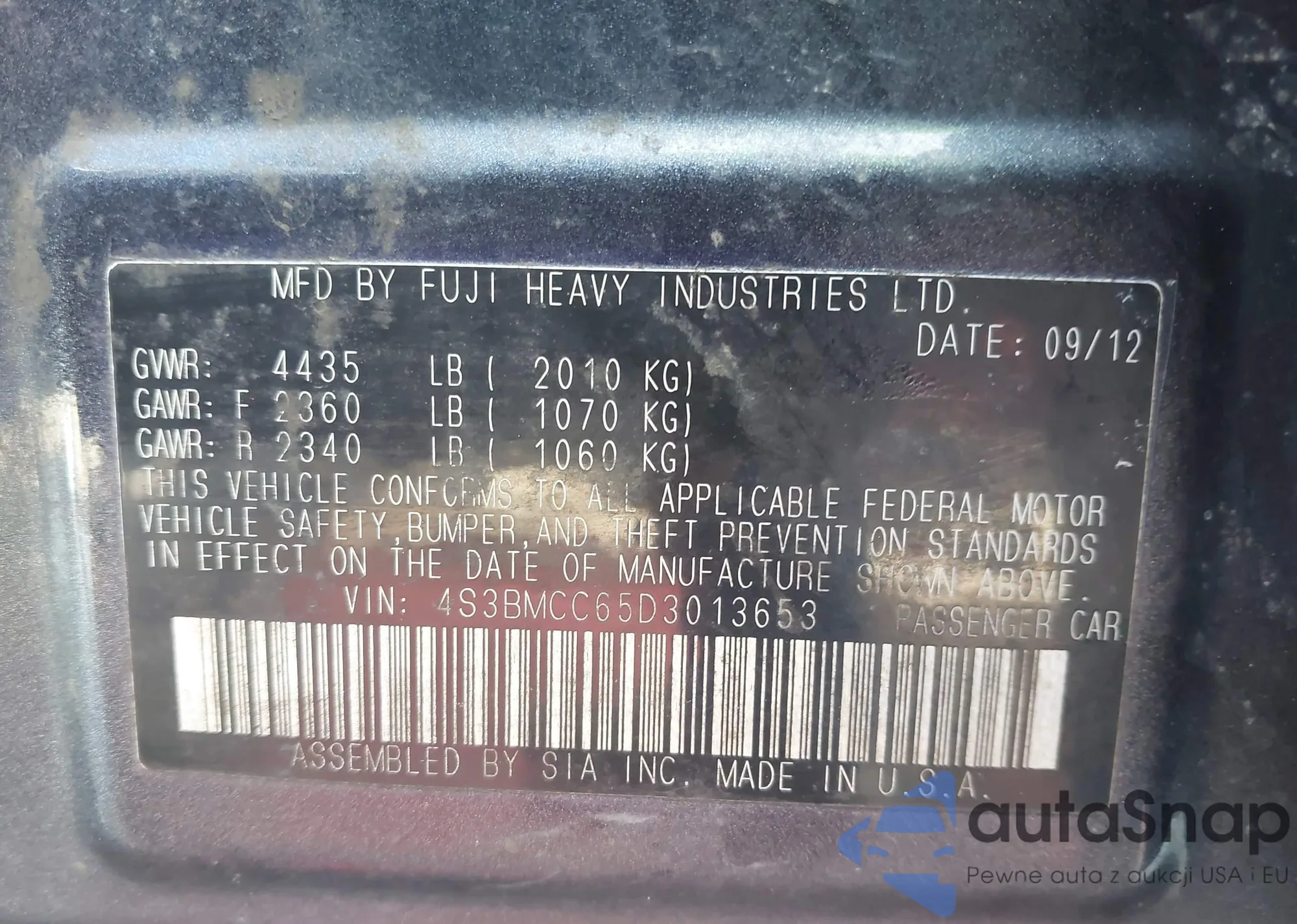 • VIN: 4S3BMCC65D3013653