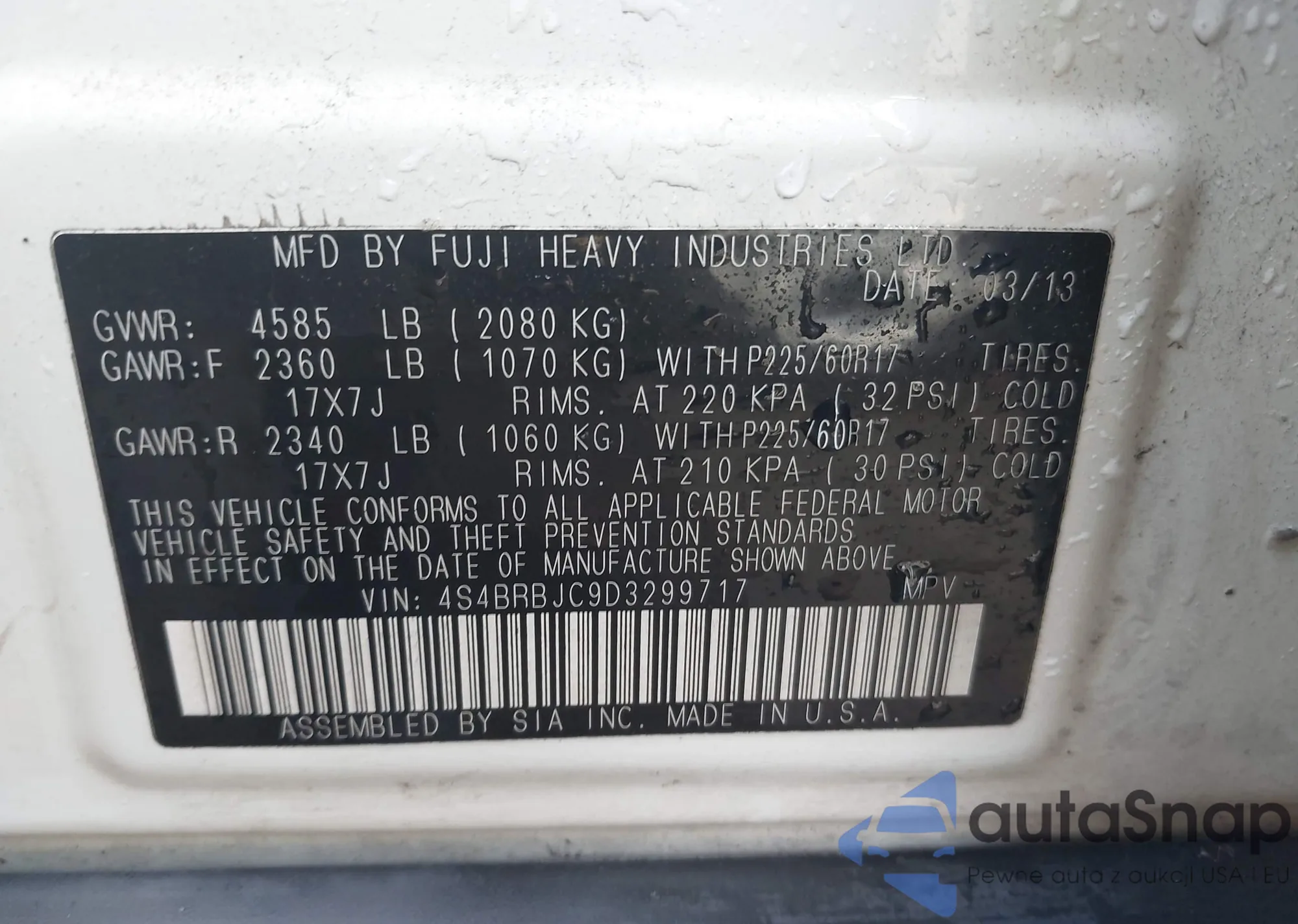 VIN: 4S4BRBJC9D3299717