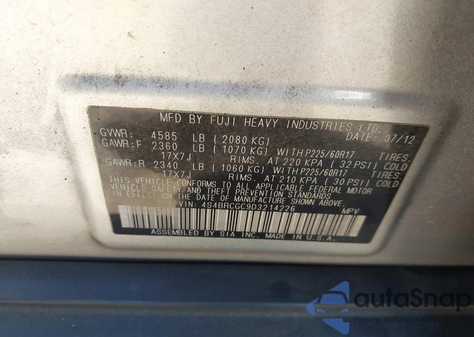 The car Subaru Outback 2013 (VIN 4S4BRCGC9D3214226) is sold by an unverified seller. We recommend checking the Carfax report and confirming registration possibilities before purchase.