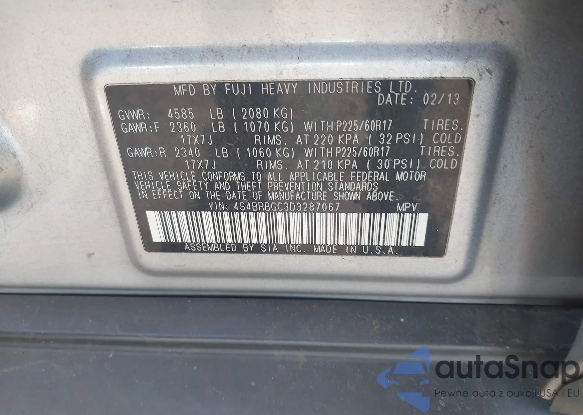 VIN: 4S4BRBGC3D3287067