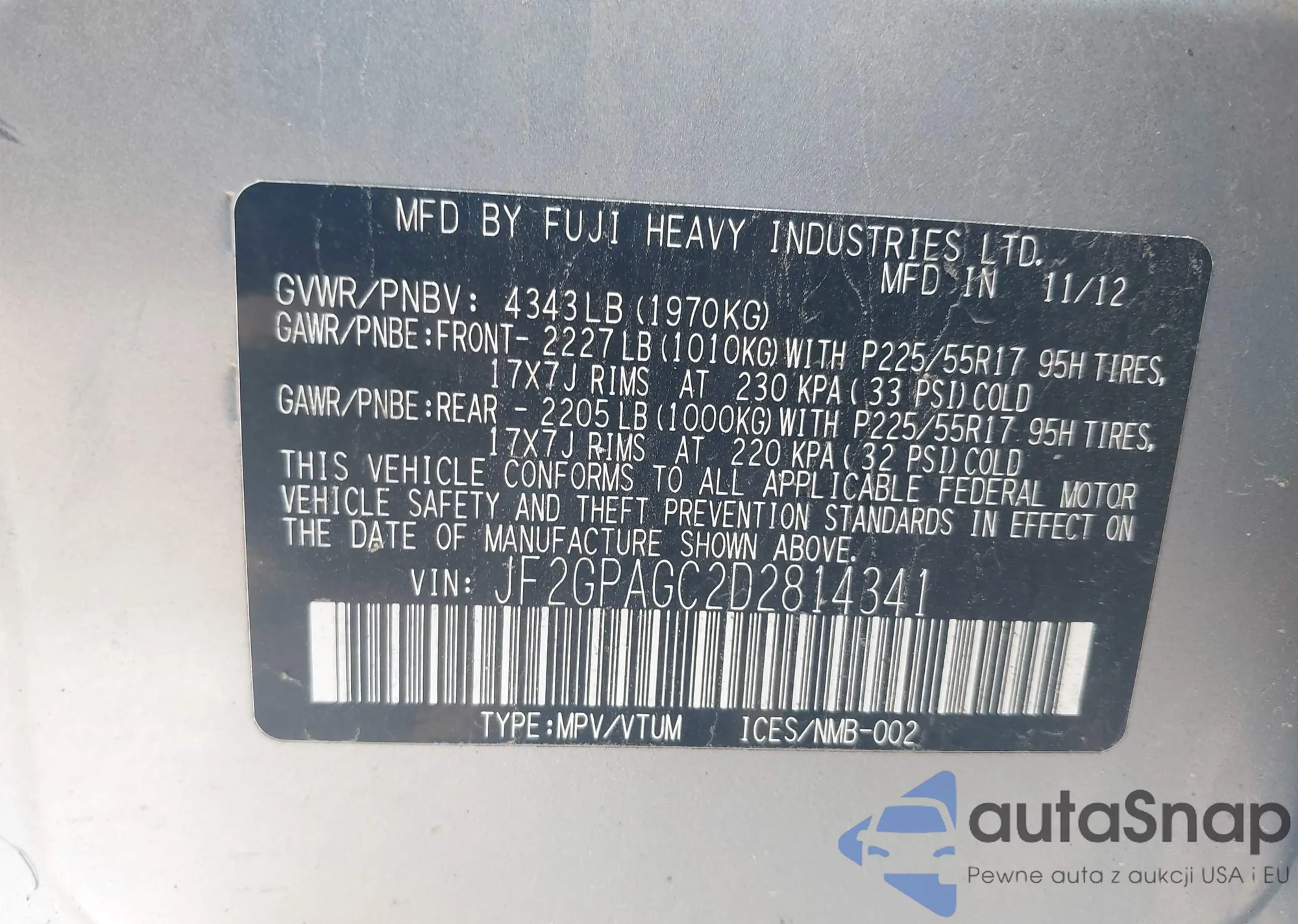 VIN: JF2GPAGC2D2814341