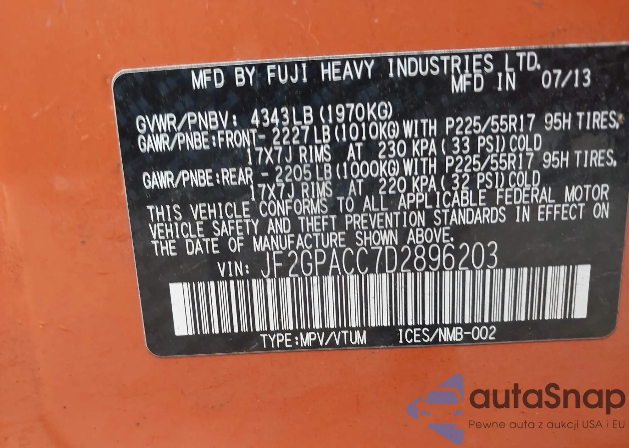 VIN: JF2GPACC7D2896203