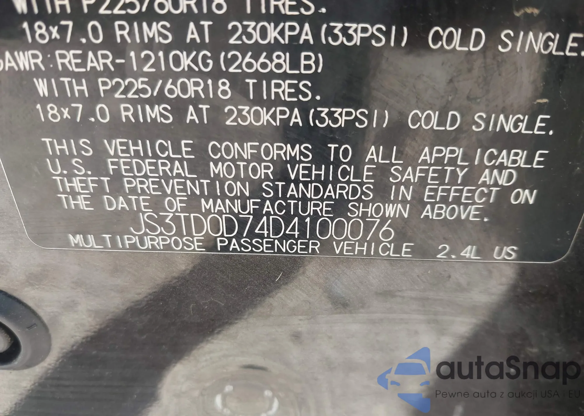 VIN: JS3TD0D74D4100076