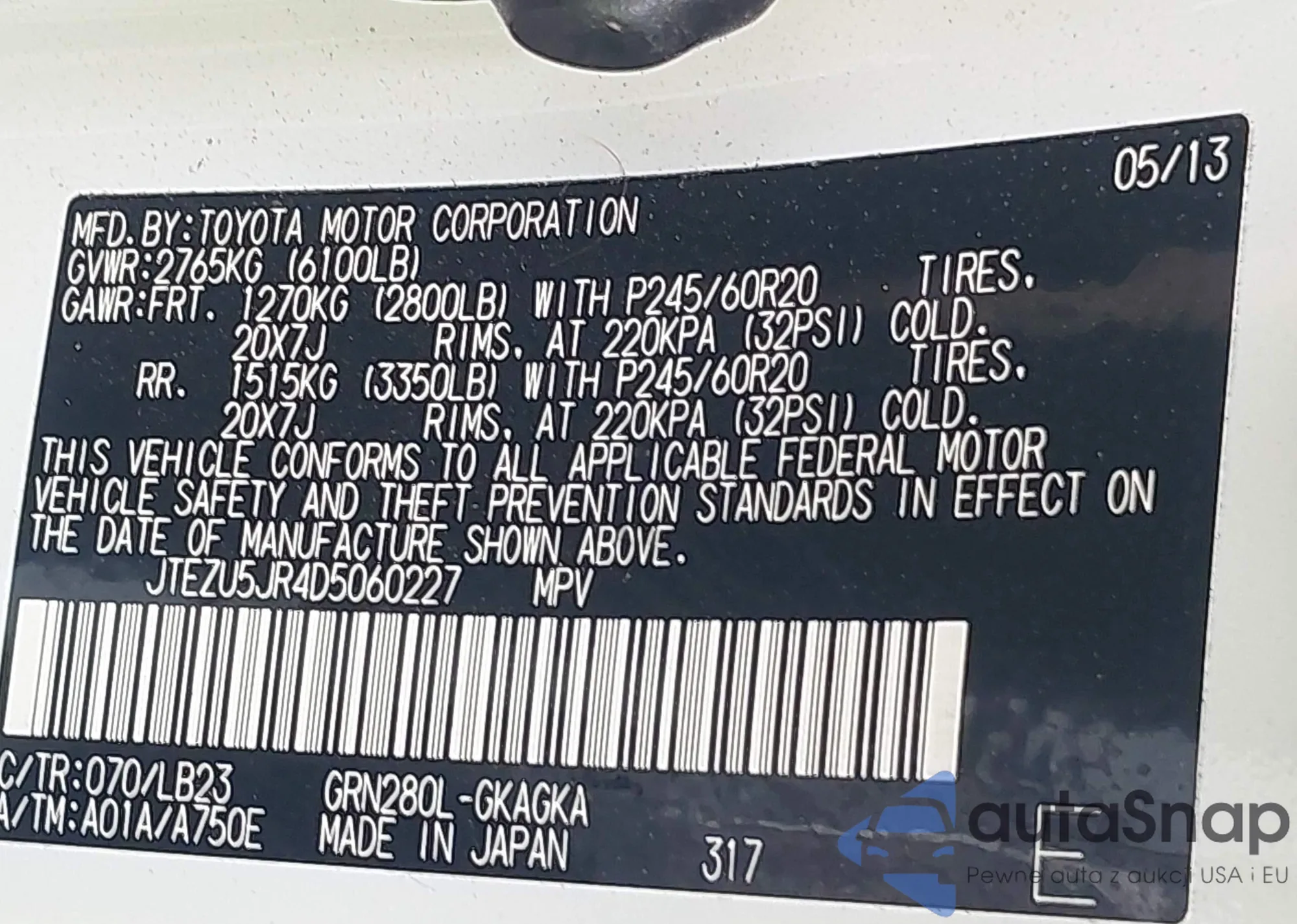 VIN: JTEZU5JR4D5060227