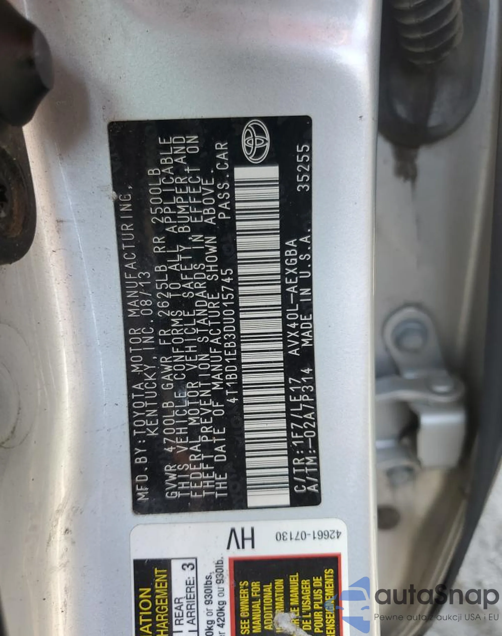 VIN: 4T1BD1EB3DU015745