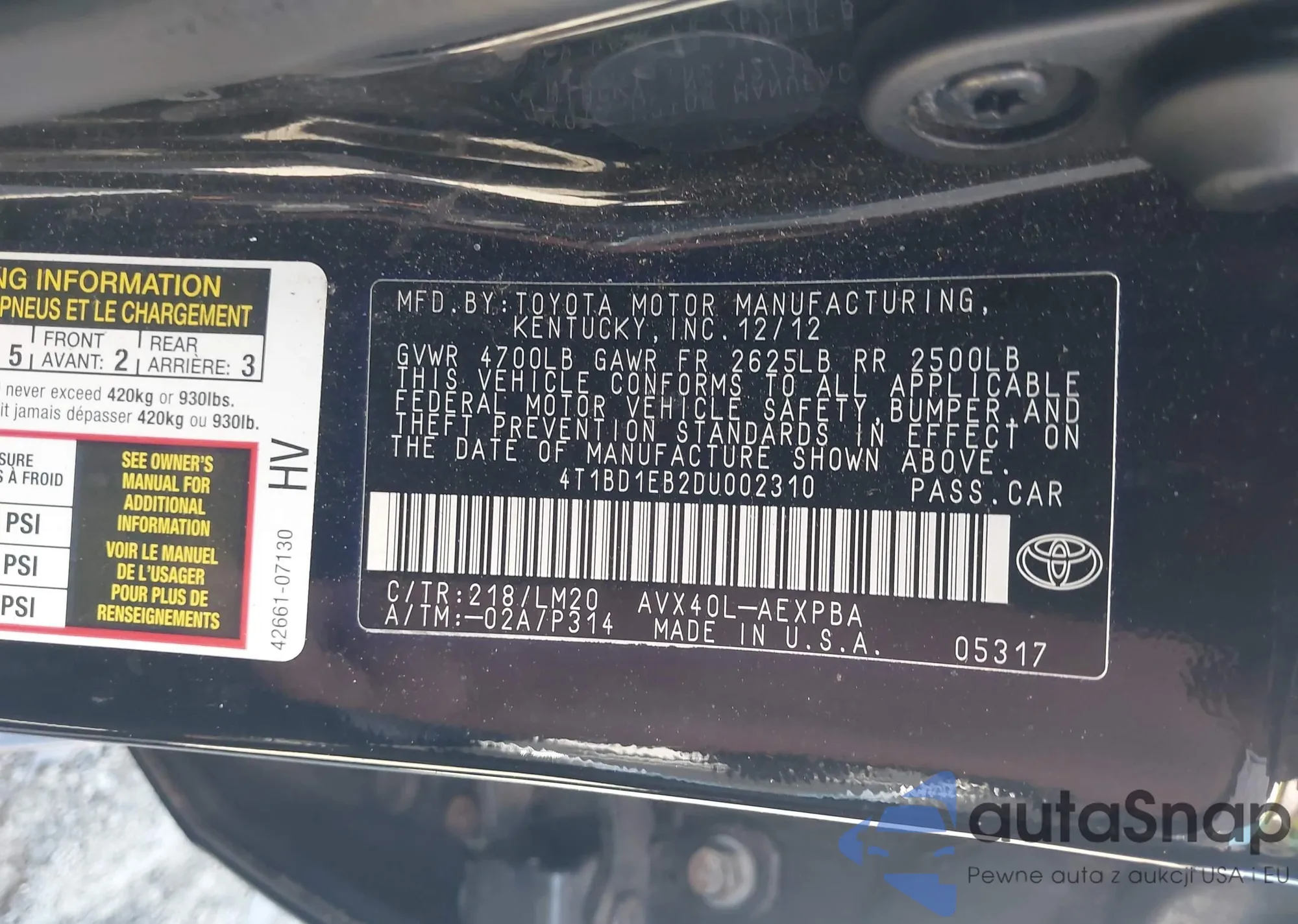 VIN: 4T1BD1EB2DU002310