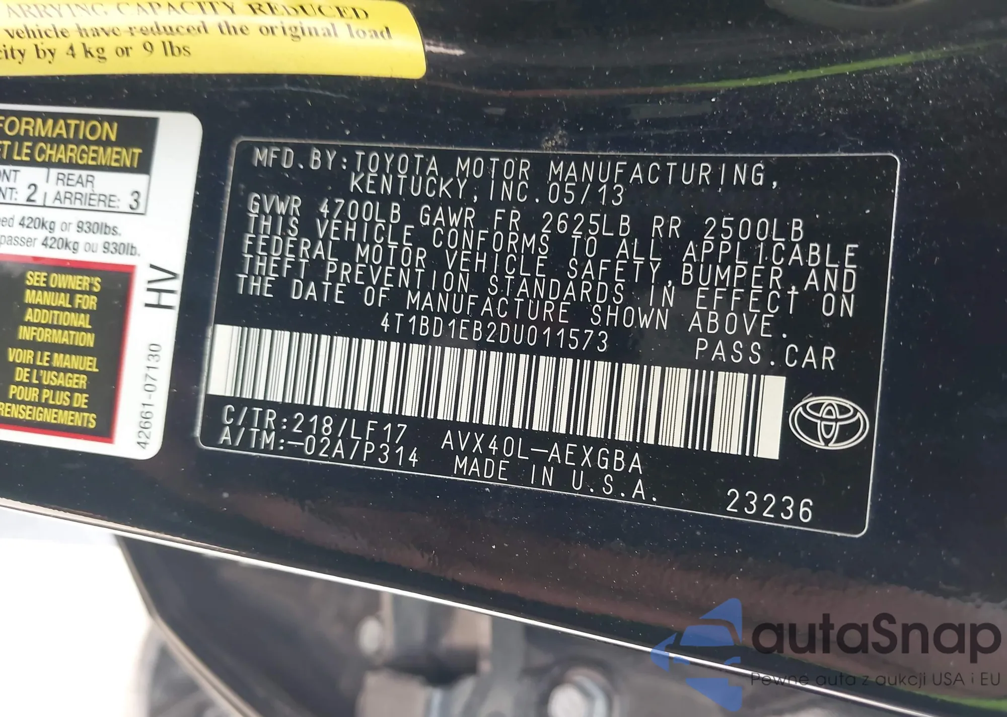 The car Toyota Avalon 2013 (VIN 4T1BD1EB2DU011573) is sold by an unverified seller. We recommend checking the Carfax report and confirming registration possibilities before purchase.
