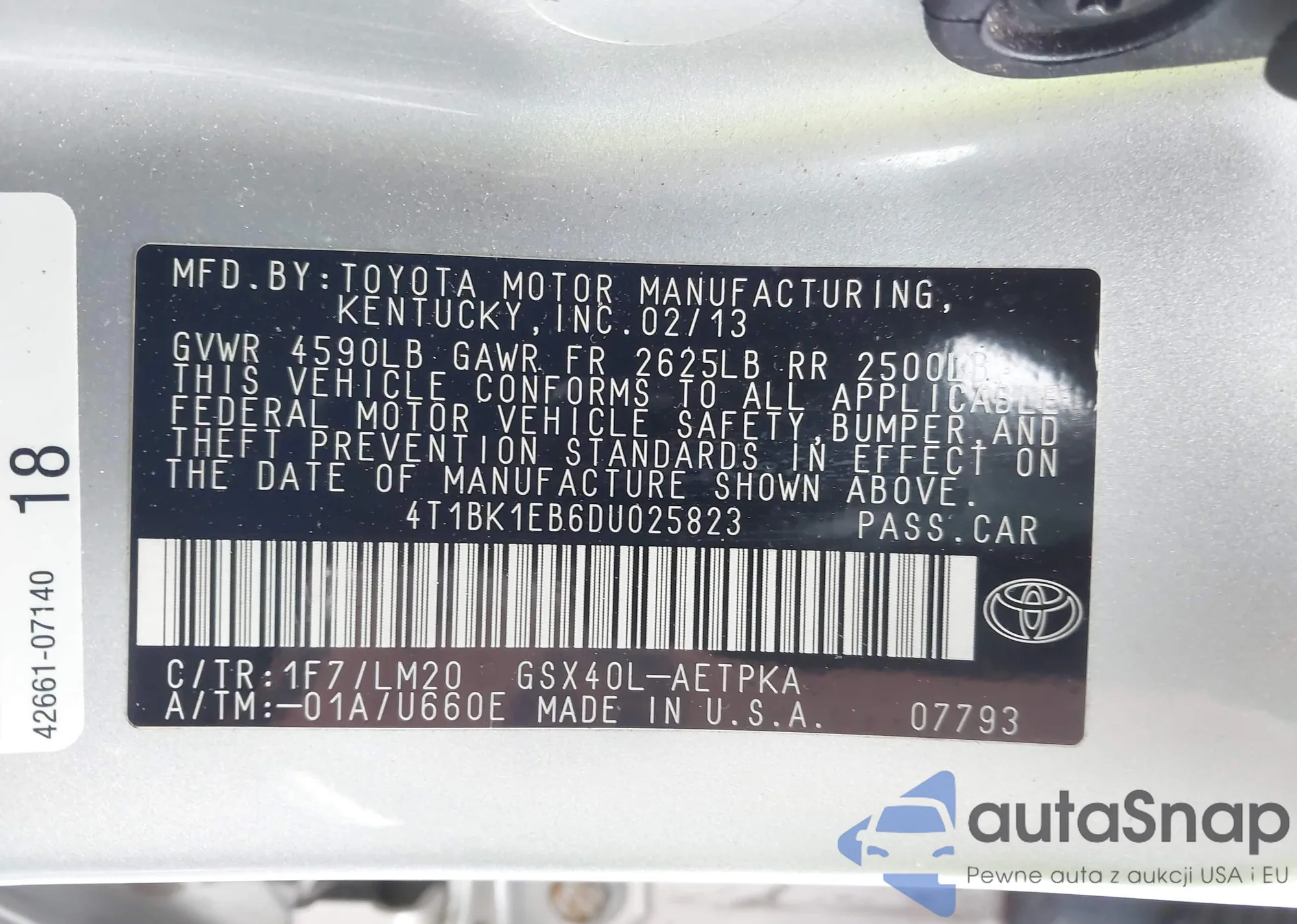 VIN: 4T1BK1EB6DU025823