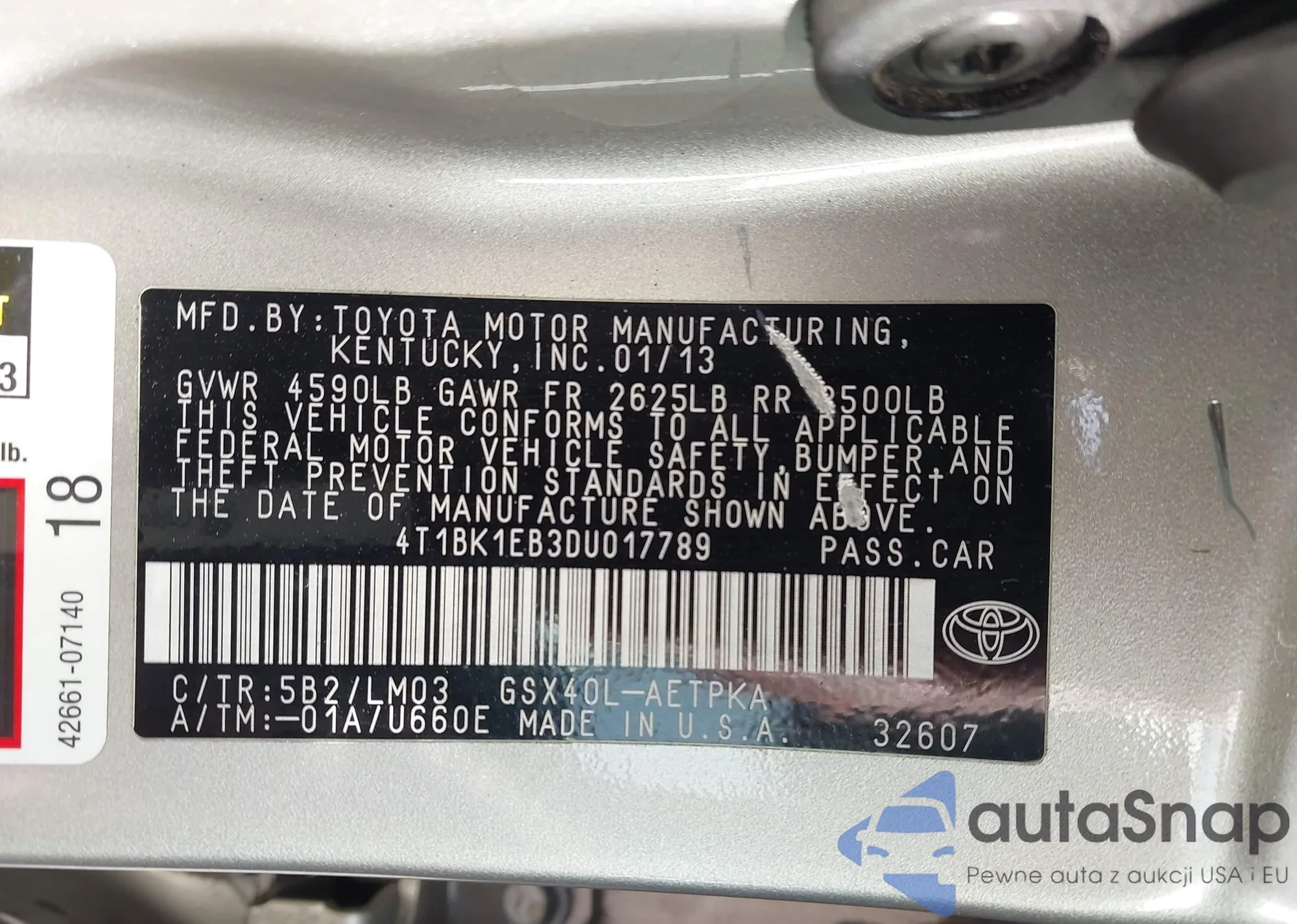 The car Toyota Avalon 2013 (VIN 4T1BK1EB3DU017789) has not been auctioned before. The documents are clean, and the mileage matches or is below the market average. Sold by an insurance company – we recommend purchase. Delivery to the port will take approx. 6–8 weeks.