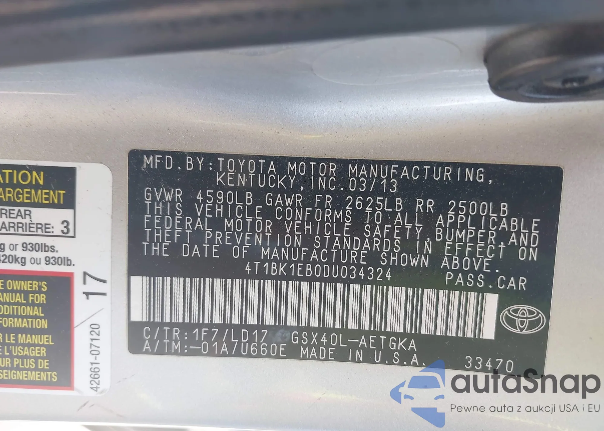 VIN: 4T1BK1EB0DU034324