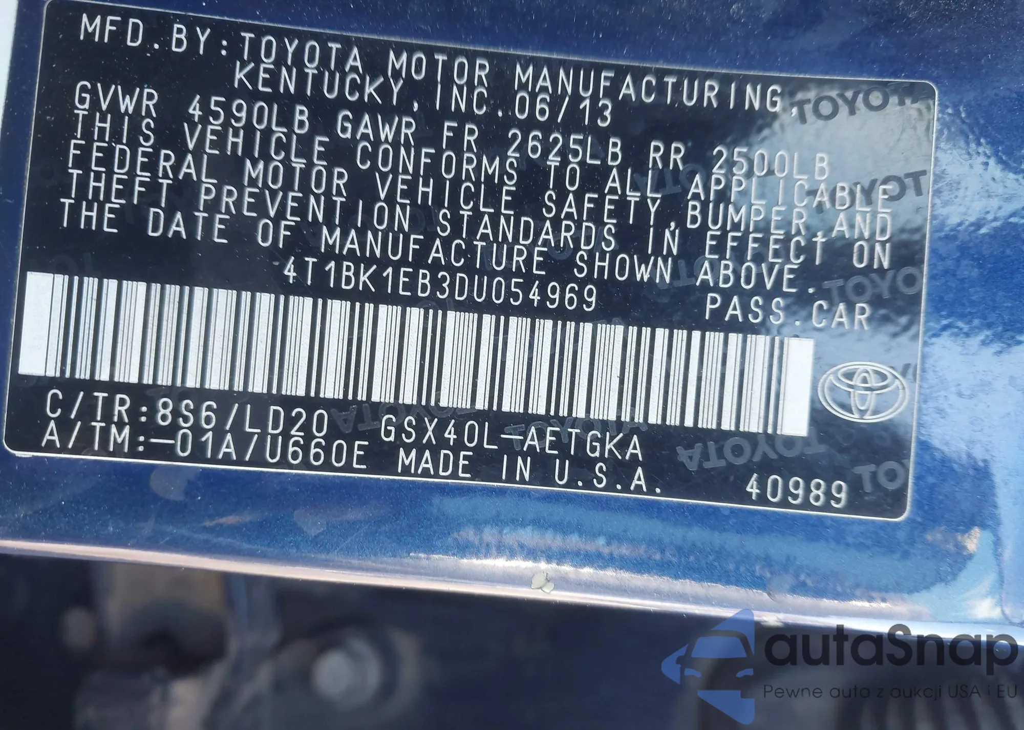 The car Toyota Avalon 2013 (VIN 4T1BK1EB3DU054969) has not been auctioned before. The documents are clean, and the mileage matches or is below the market average. Sold by an insurance company – we recommend purchase. Delivery to the port will take approx. 6–8 weeks.