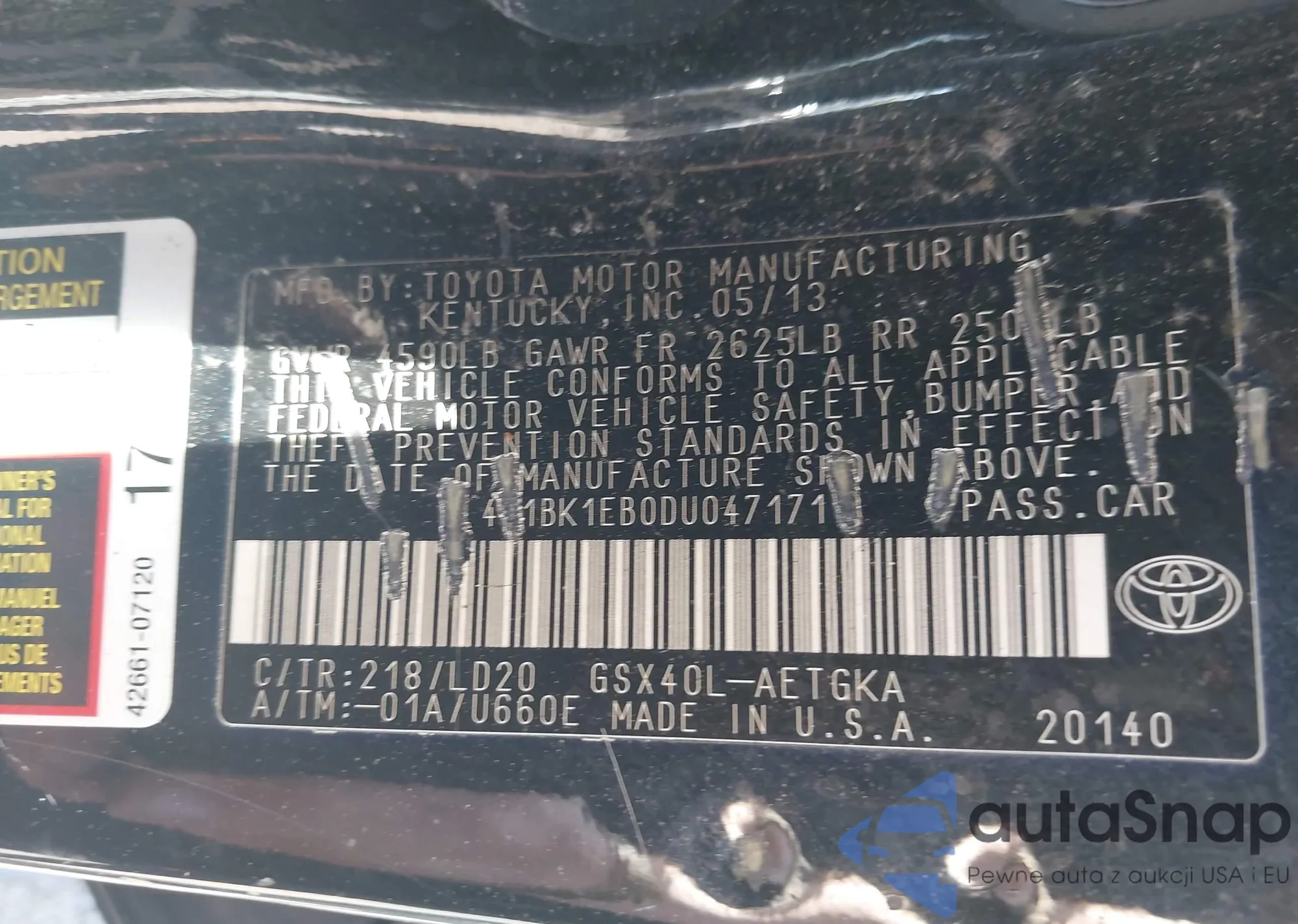 VIN: 4T1BK1EB0DU047171