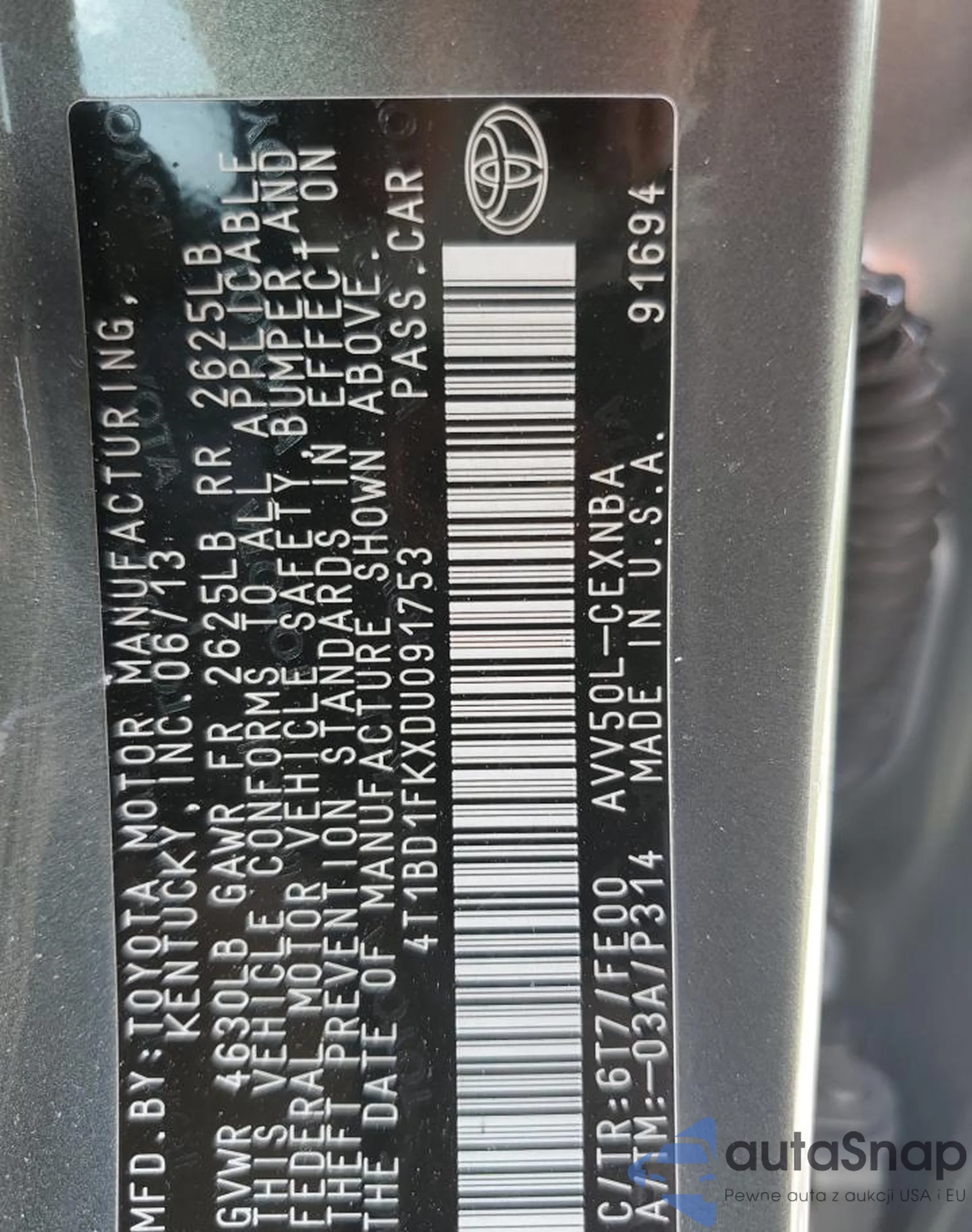 VIN: 4T1BD1FKXDU091753