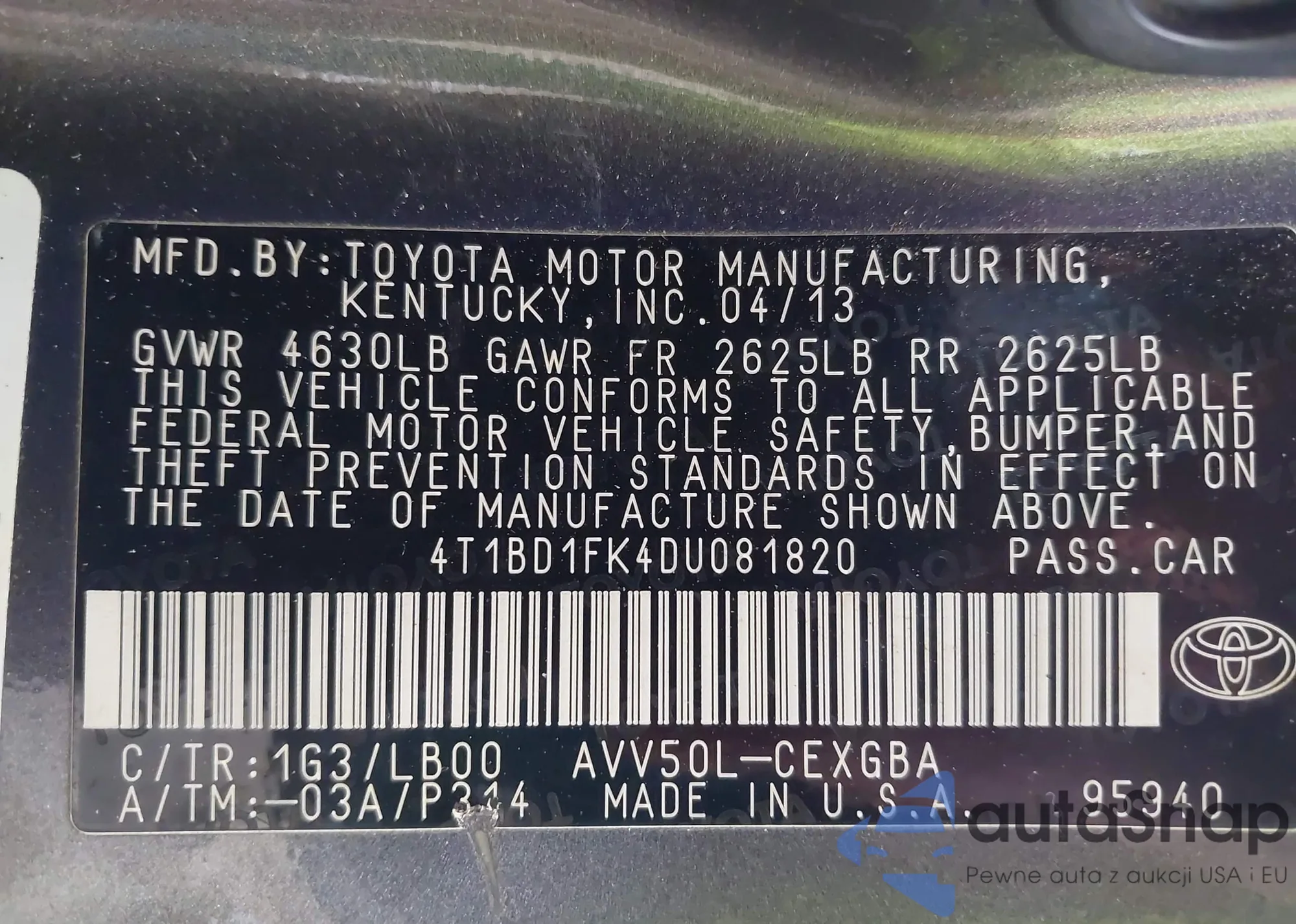 VIN: 4T1BD1FK4DU081820