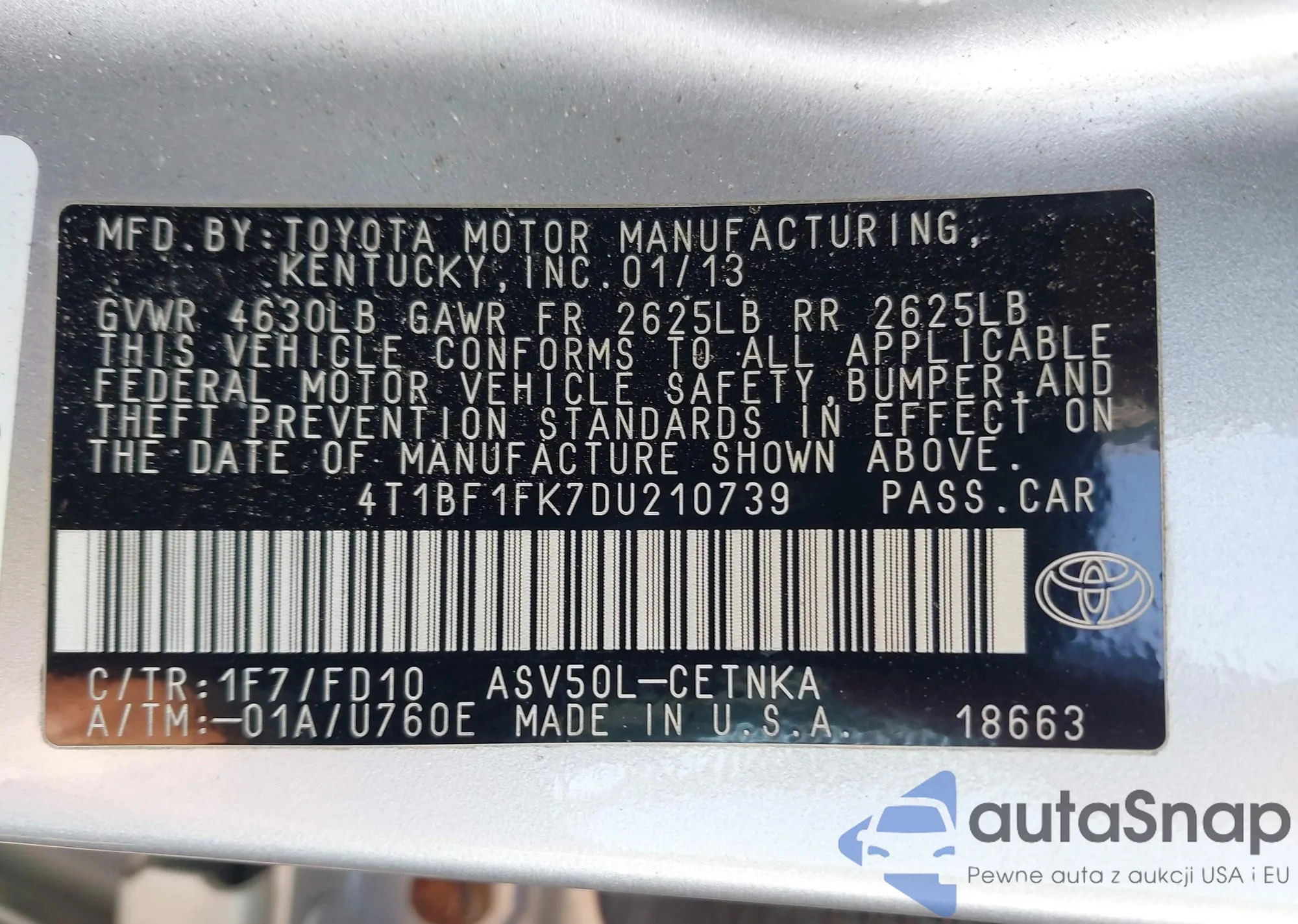 VIN: 4T1BF1FK7DU210739