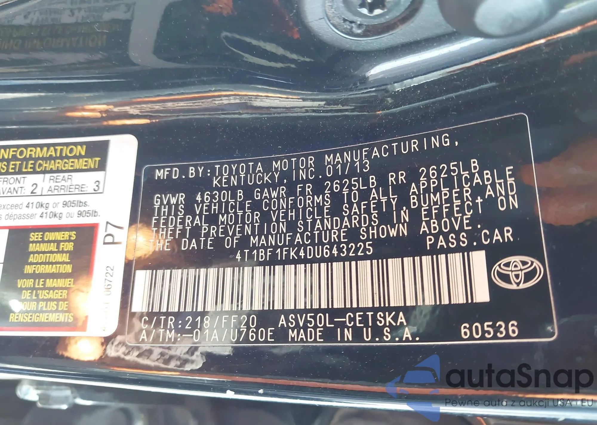 VIN: 4T1BF1FK4DU643225