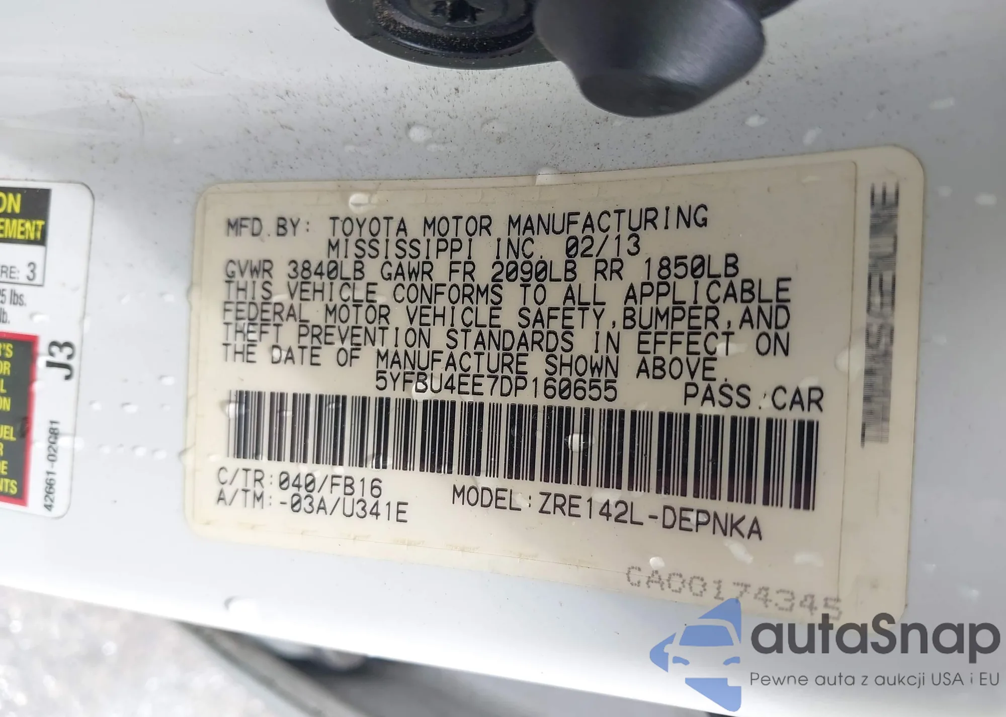 VIN: 5YFBU4EE7DP160655