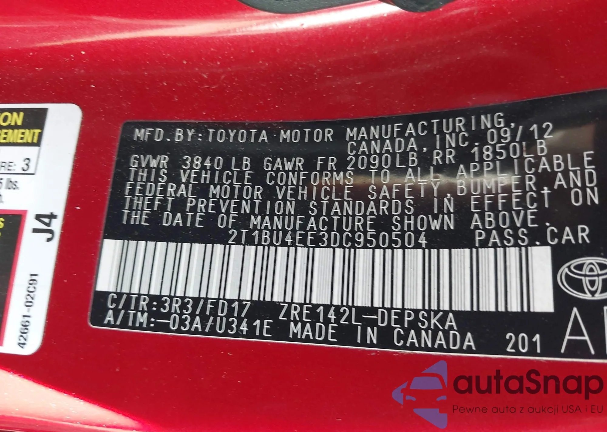 The car Toyota Corolla 2013 (VIN 2T1BU4EE3DC950504) has not been auctioned before. The documents are clean, and the mileage matches or is below the market average. Sold by an insurance company – we recommend purchase. Delivery to the port will take approx. 6–8 weeks.