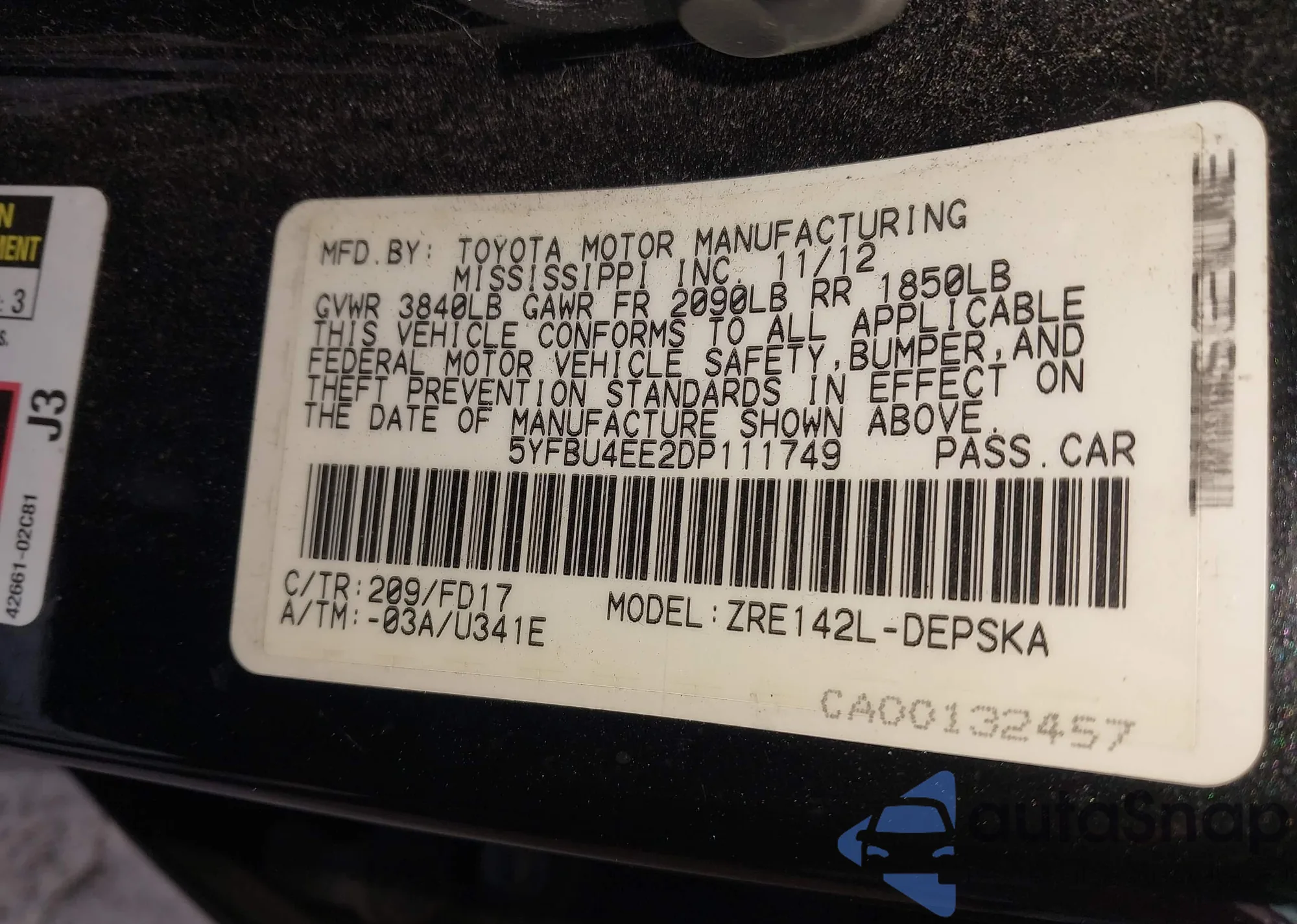 VIN: 5YFBU4EE2DP111749
