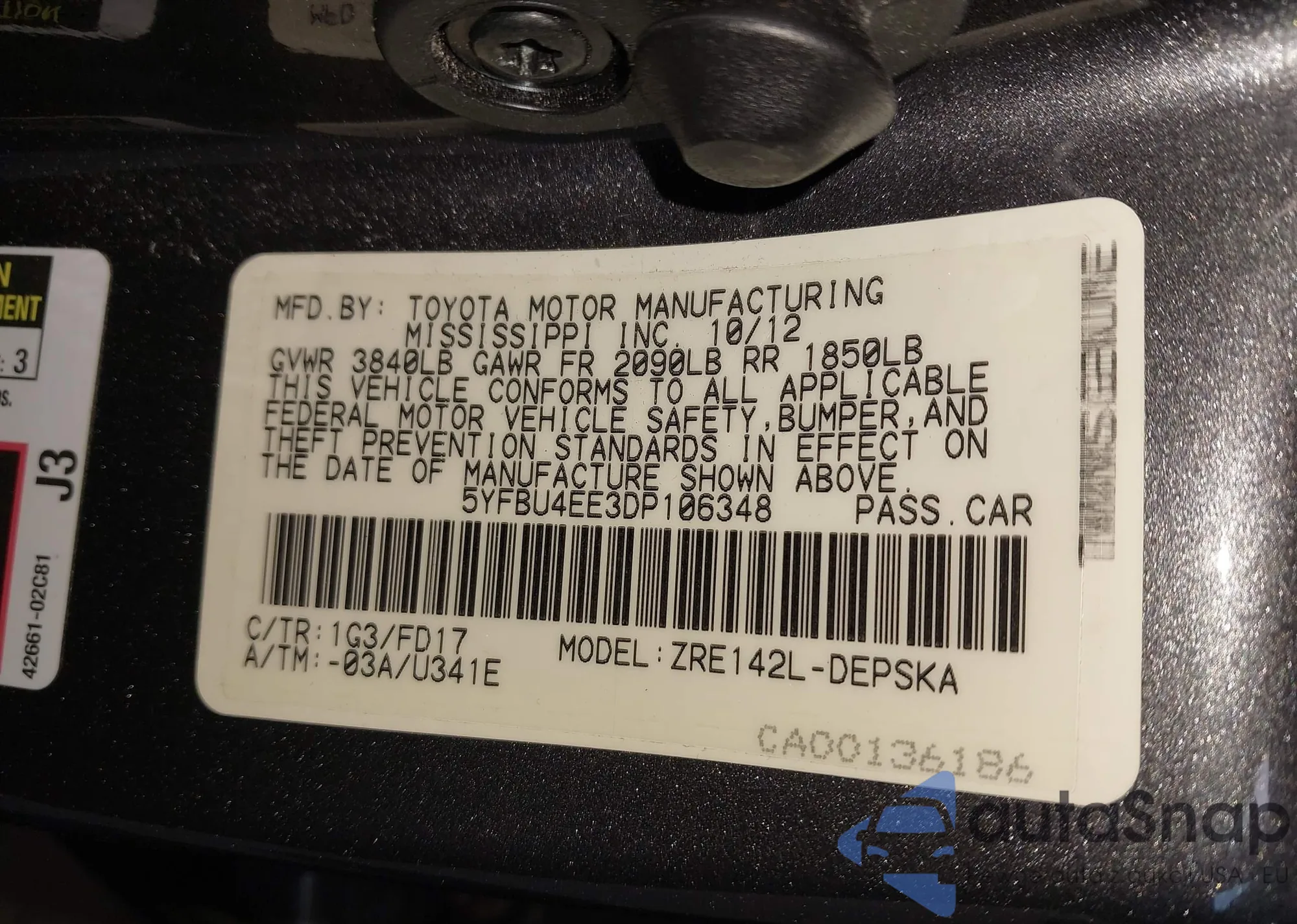 VIN: 5YFBU4EE3DP106348