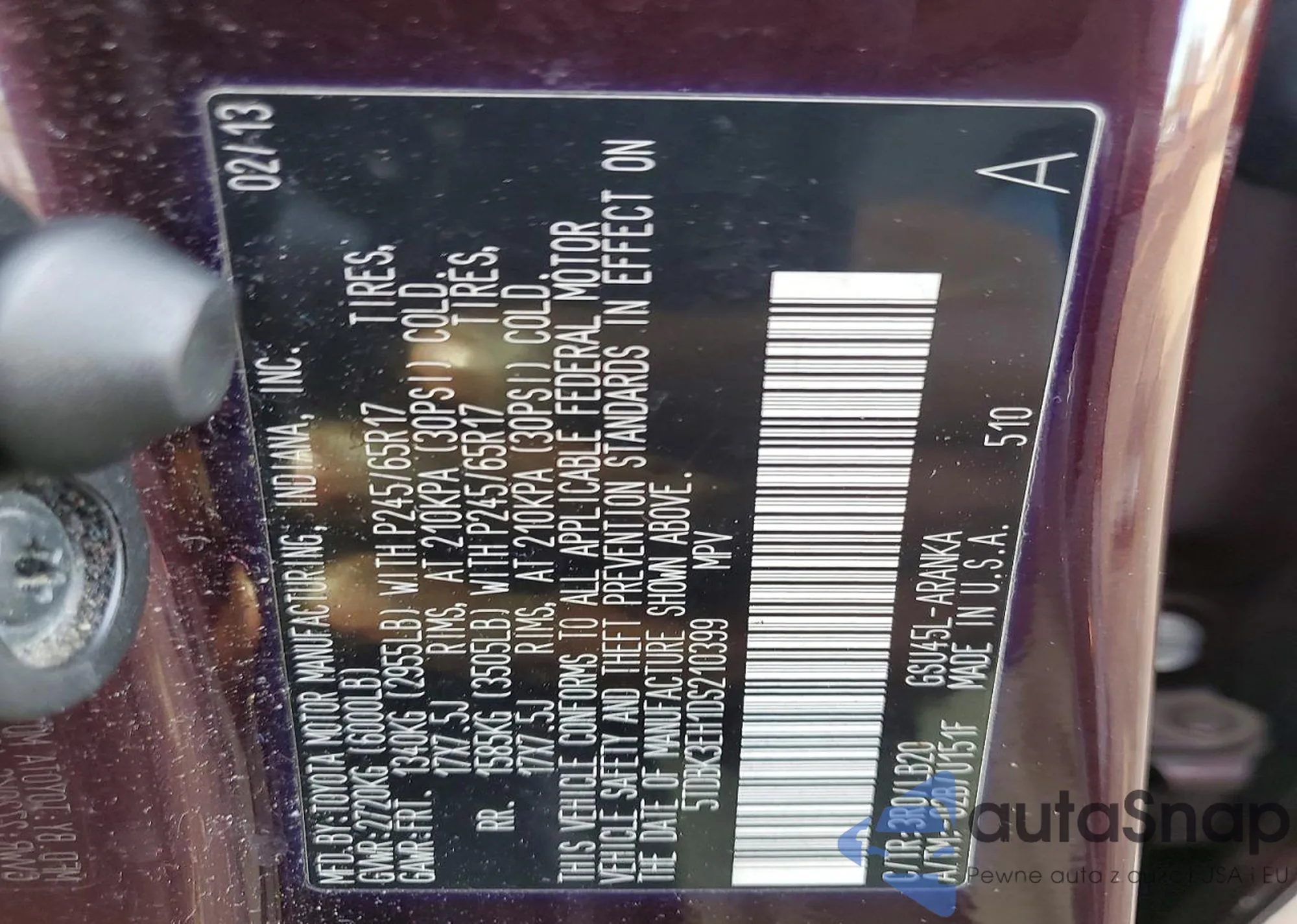 VIN: 5TDBK3EH1DS210399