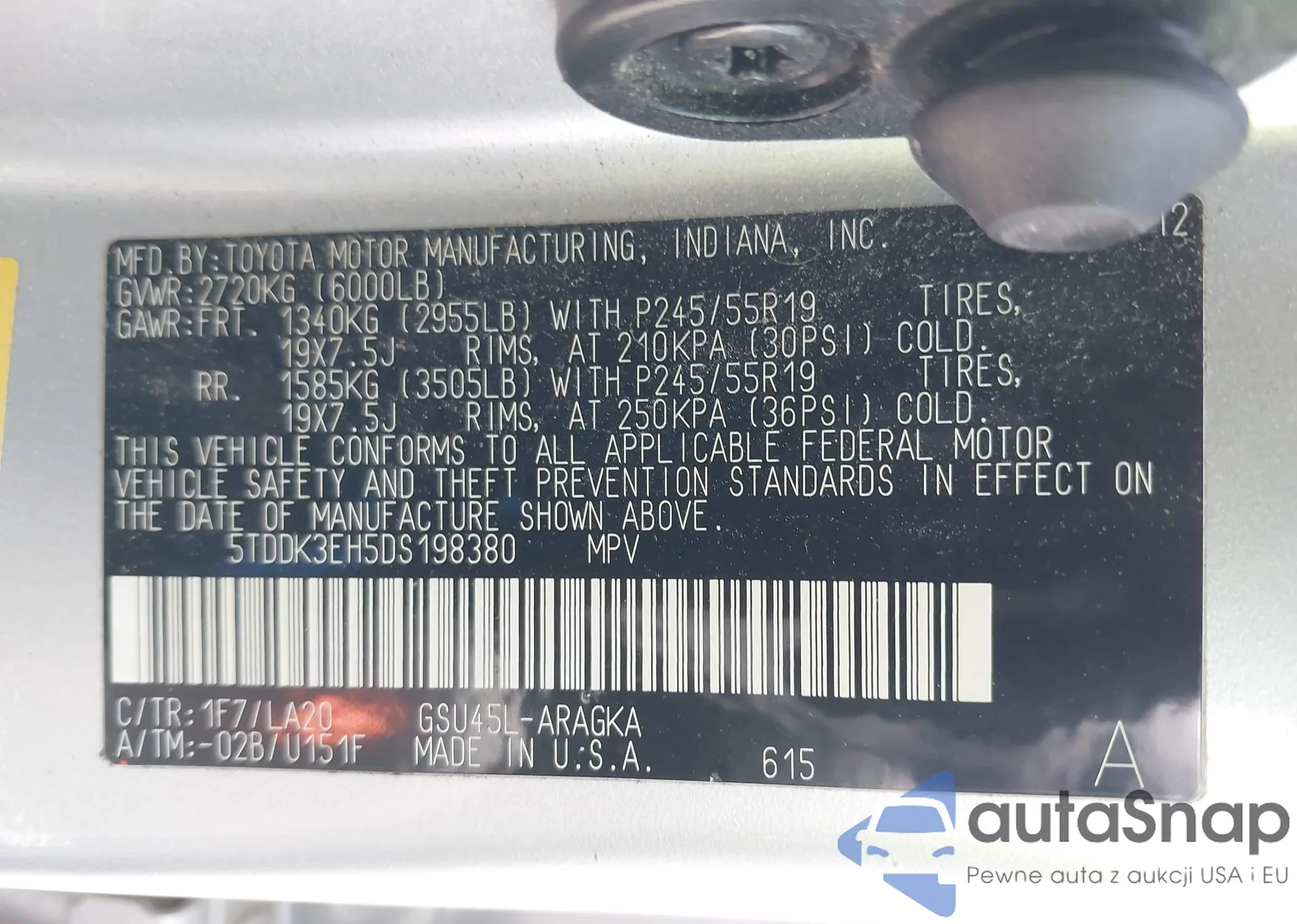VIN: 5TDDK3EH5DS198380