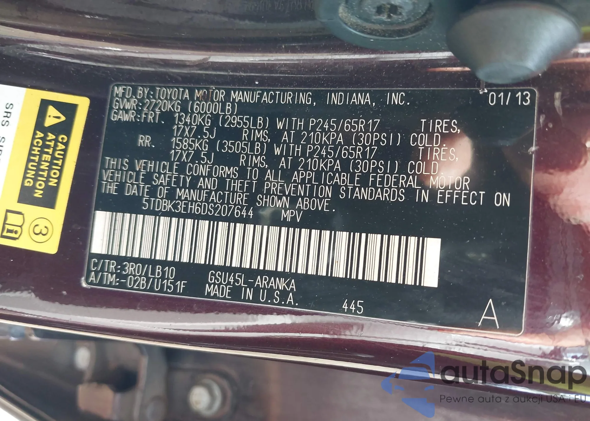 VIN: 5TDBK3EH6DS207644
