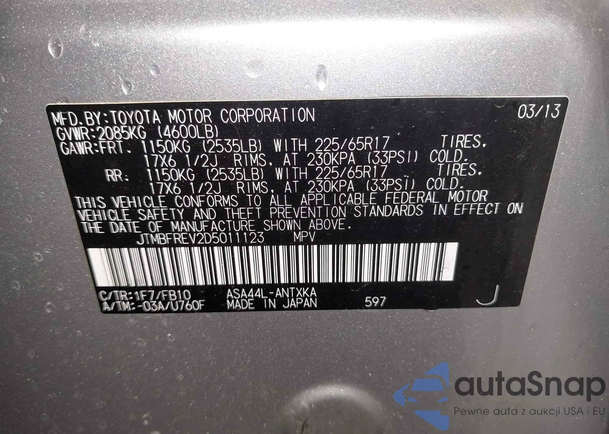 VIN: JTMBFREV2D5011123