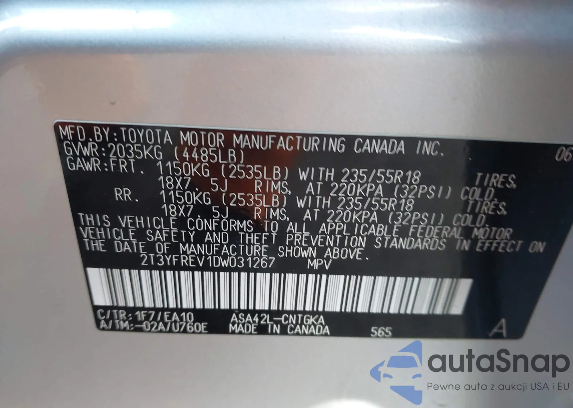 VIN: 2T3YFREV1DW031267