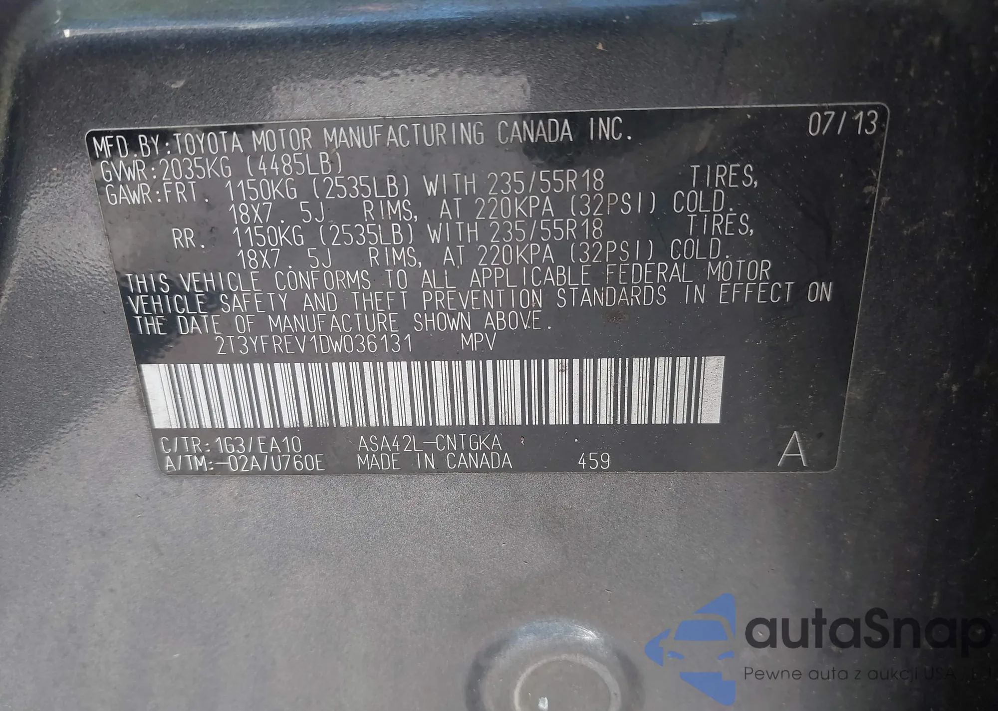 VIN: 2T3YFREV1DW036131