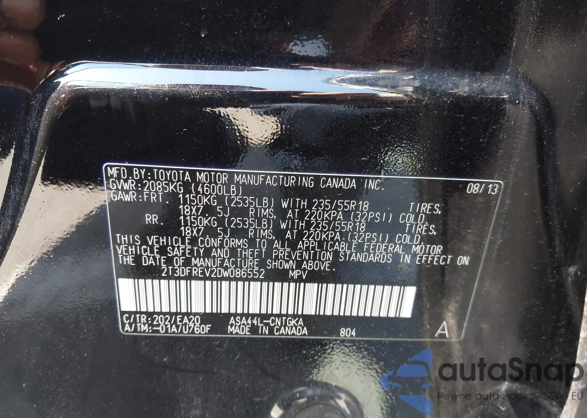 VIN: 2T3DFREV2DW086552