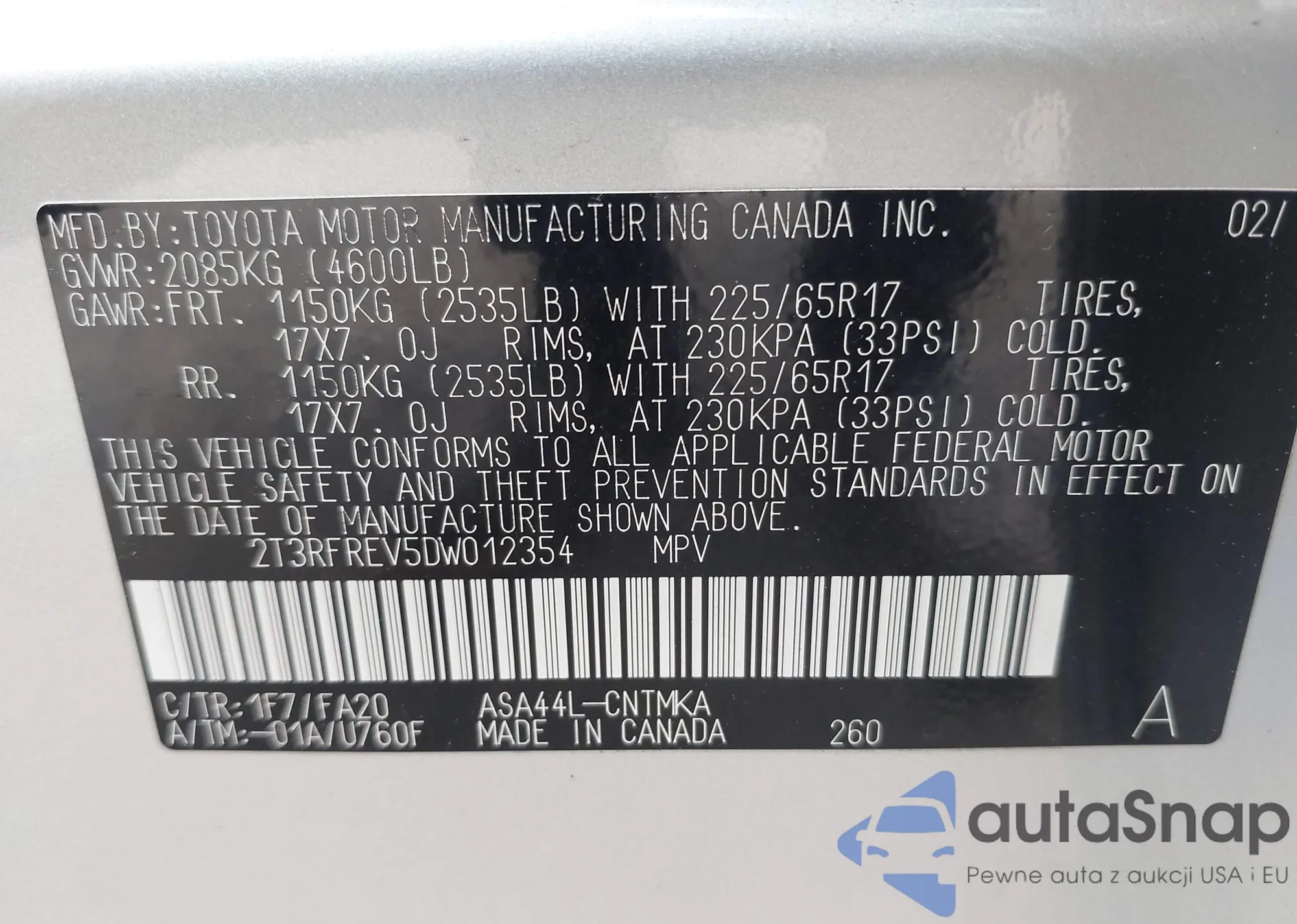 VIN: 2T3RFREV5DW012354