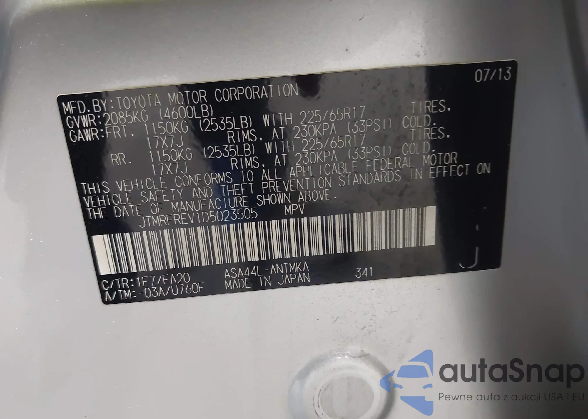 VIN: JTMRFREV1D5023505